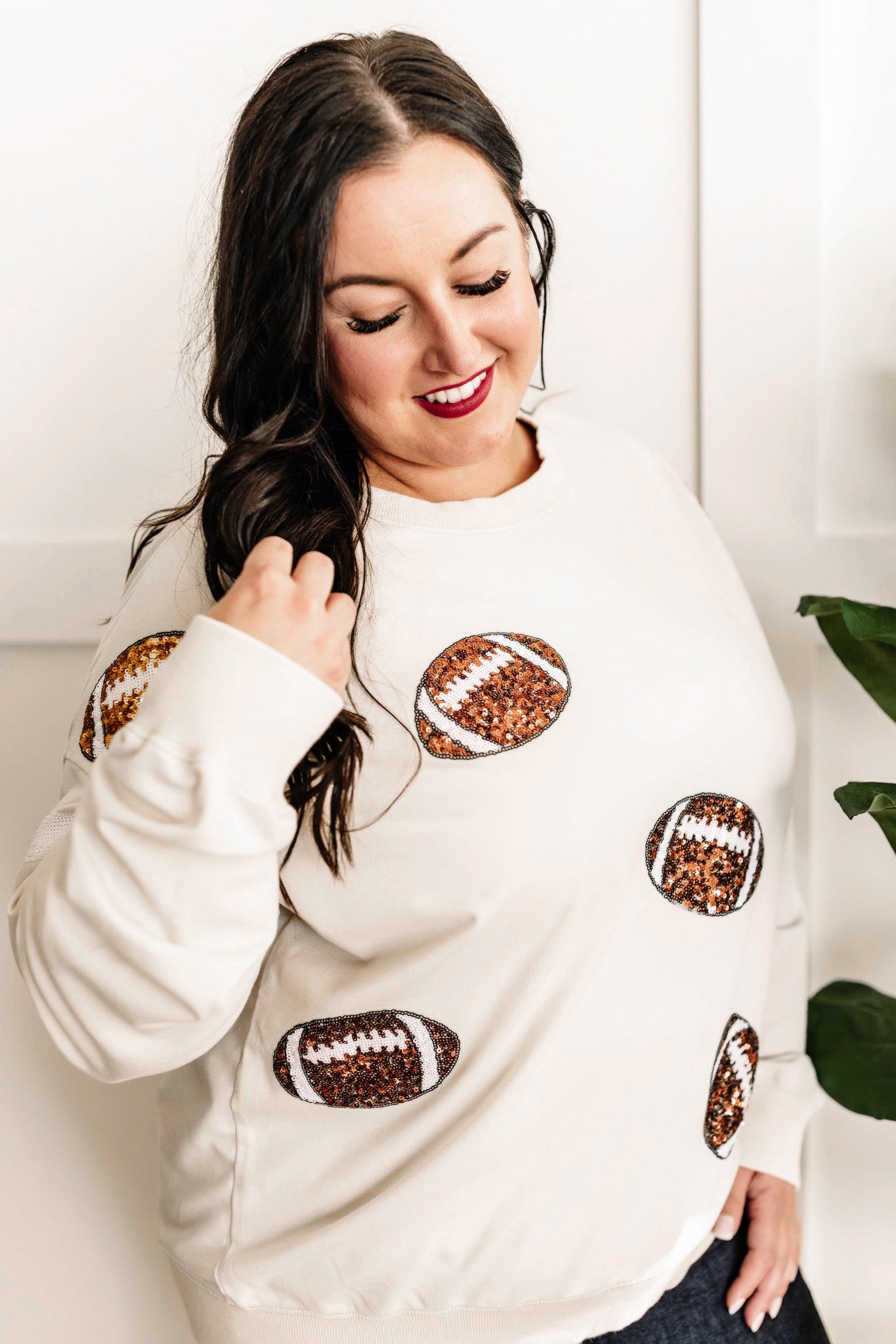 - Fits relaxed, can size down if between sizes or stay true to size for that cozy, oversized sweatshirt fit