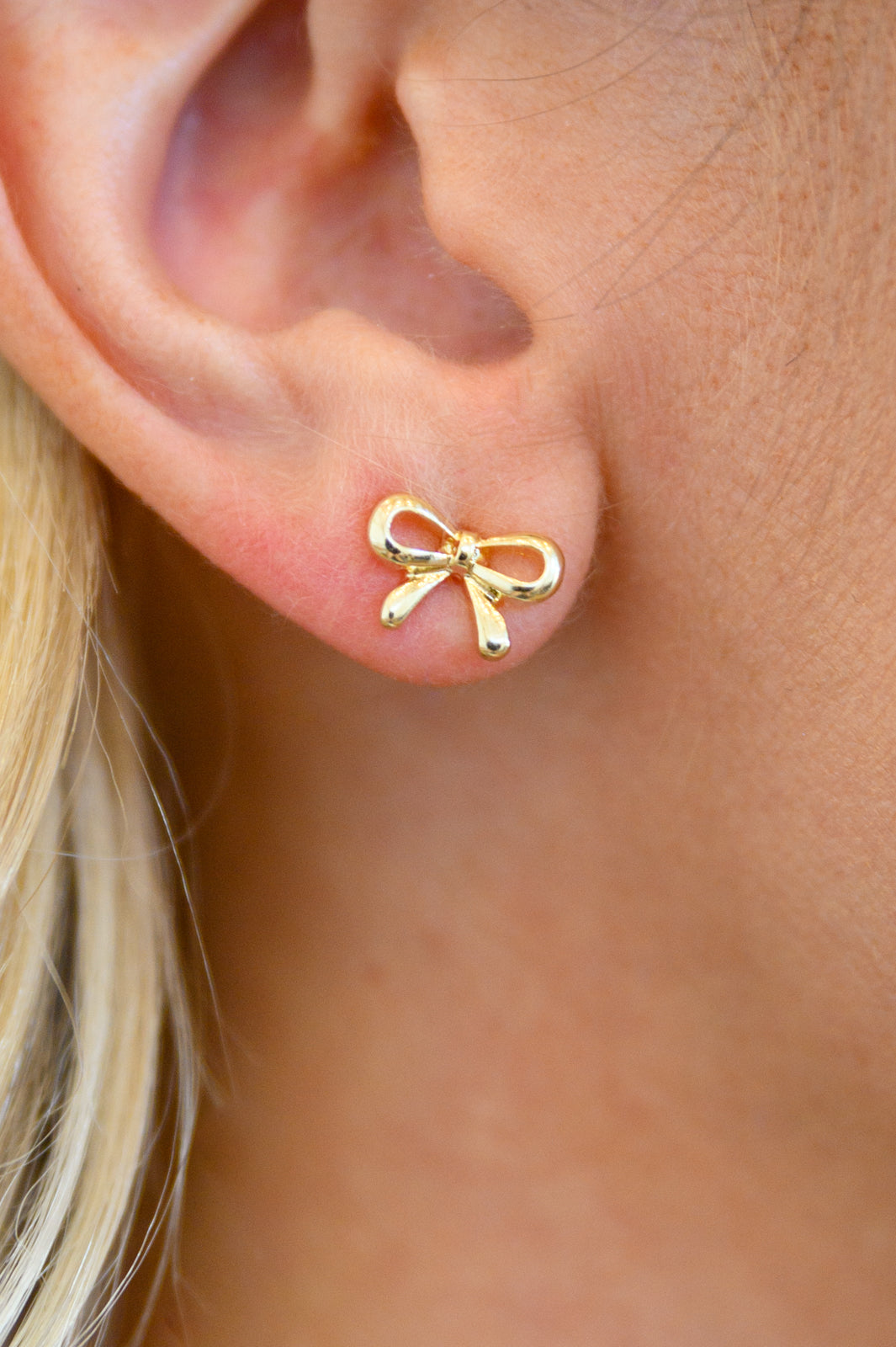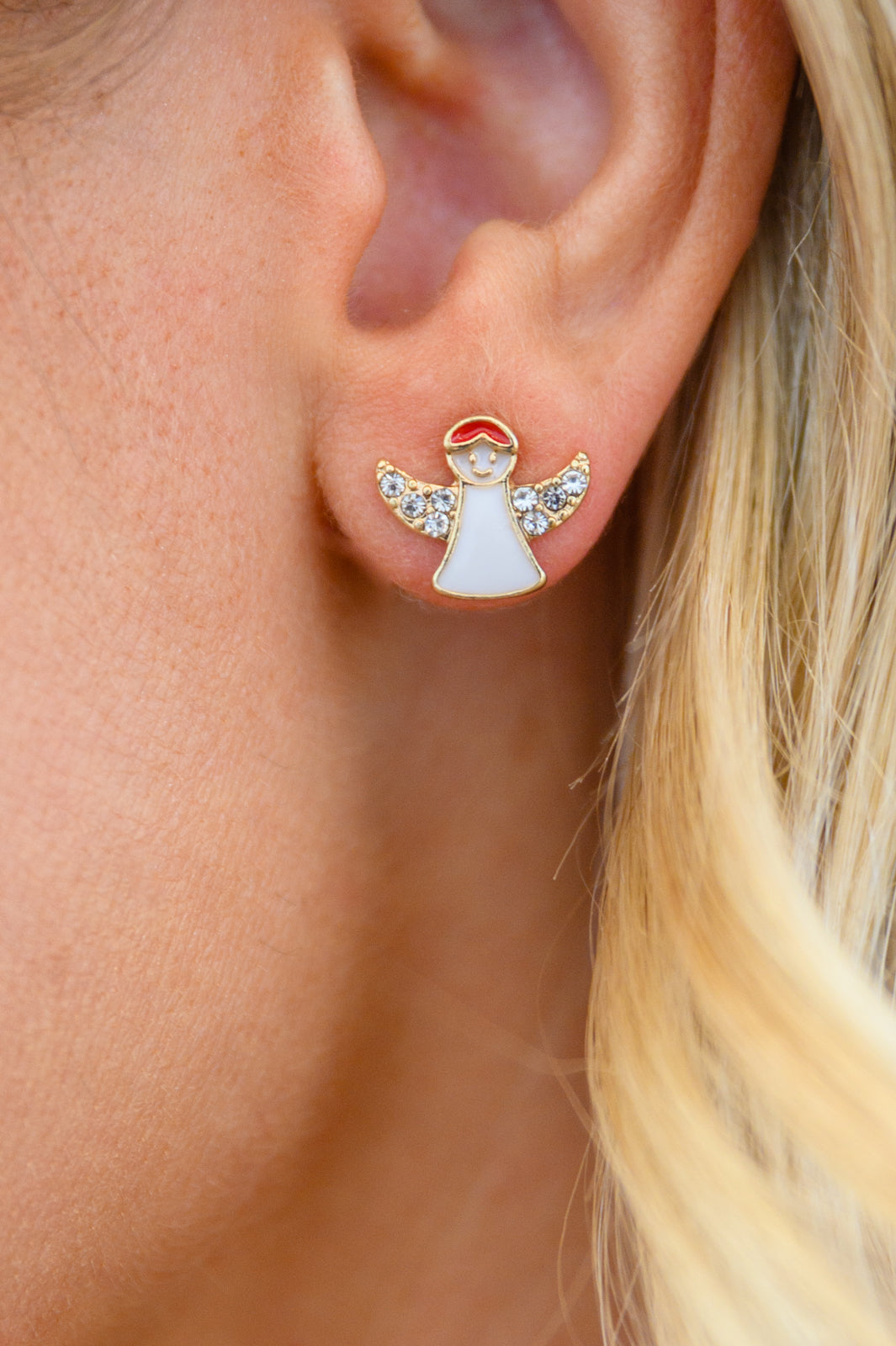 Is there anything more precious than angels and bows!? The Angelic Ties Earring Set is the perfect duo featuring a mini angel charm with faux rhinestone wings and an adorable mini gold bow.