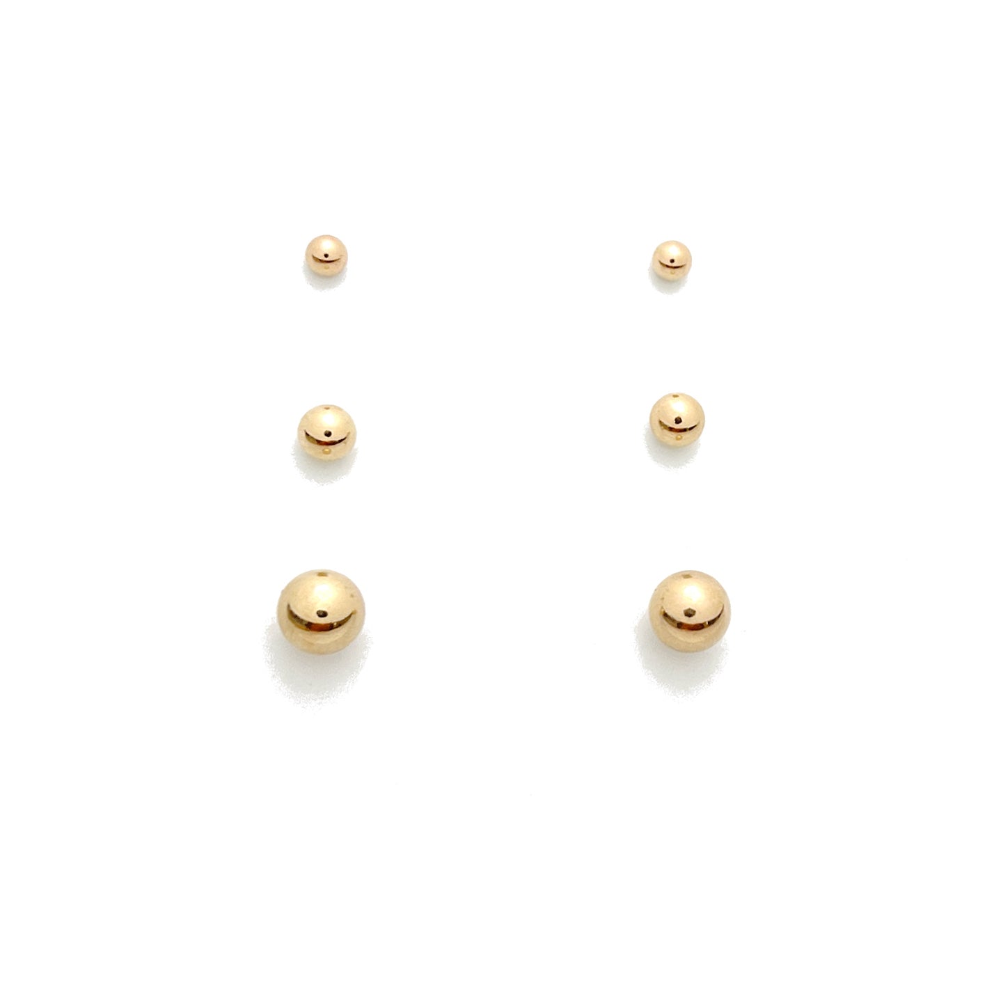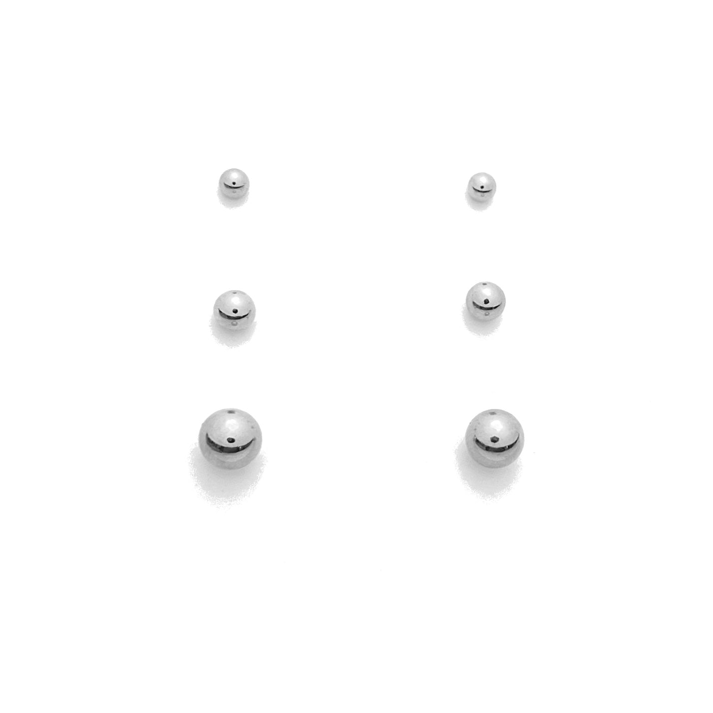 Simple and elegant, our Ball Stud Earrings come in a set of three (3): 3mm, 4mm, and 6mm with matching, locking ear nuts. Wear just one pair or pair them up!