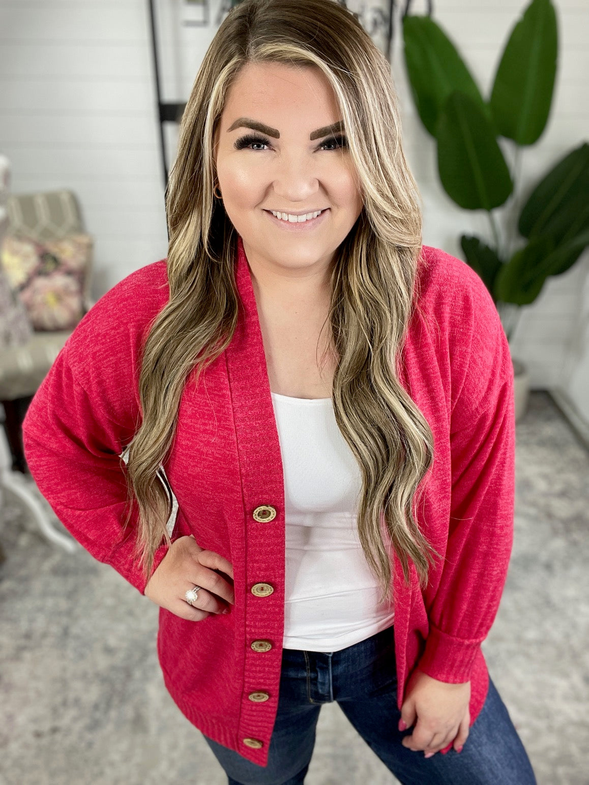 This Be My Neighbor Cardigan is a must-have for any wardrobe. Crafted from sweater knit, it has wood buttons and ribbed trim for a classic look. The classic grandpa cardigan features a v-neckline and ribbed cuffed hem for a timeless style. Embrace your inner cozy style today!