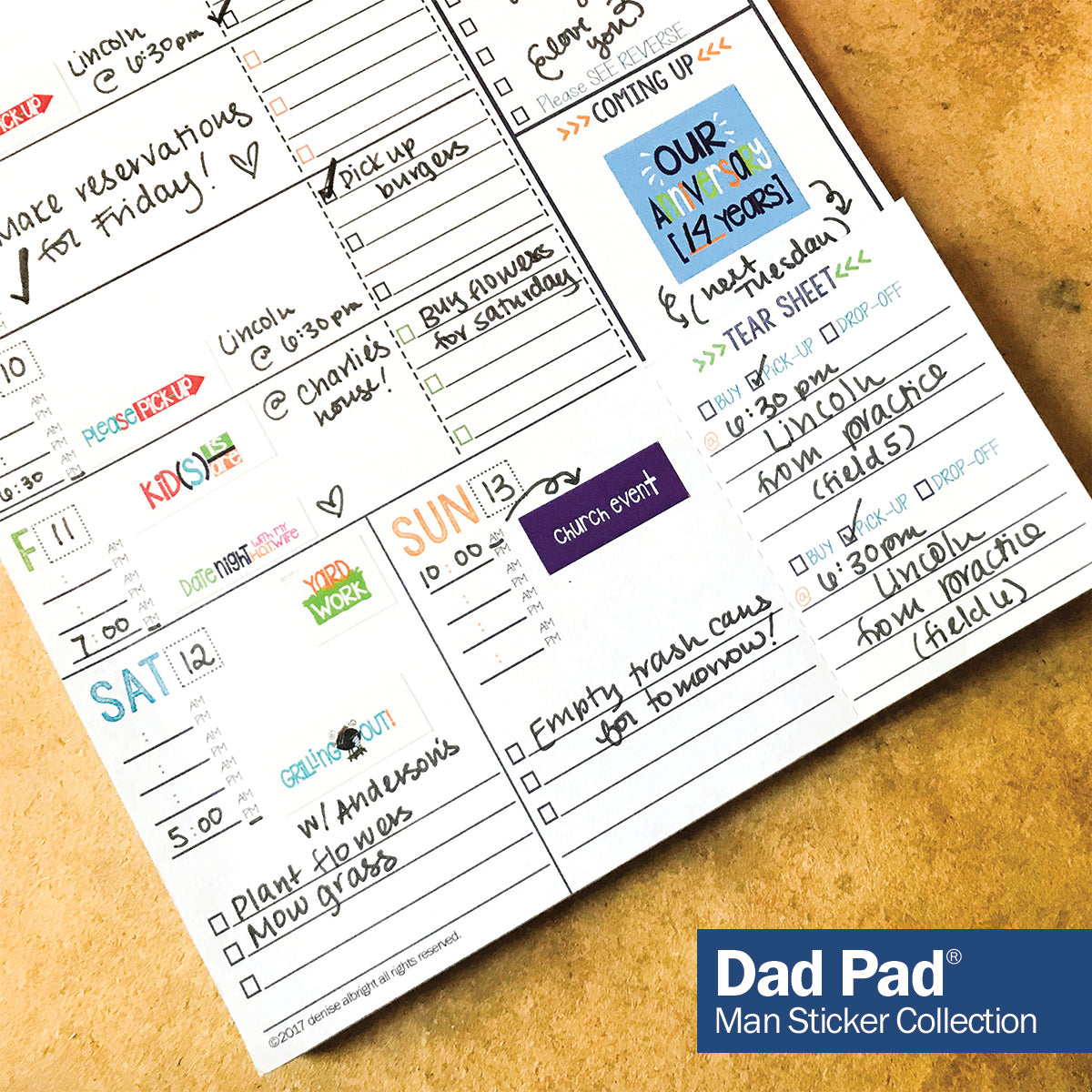 - Dad Pad Man Stickers (644 Stickers) - He'll never admit it, but stickers help him notice what he should! Add these "man" stickers to his own weekly view to help him stay on task with events he needs to attend, tasks he needs to do and let's be honest, remembering your birthday and anniversary!