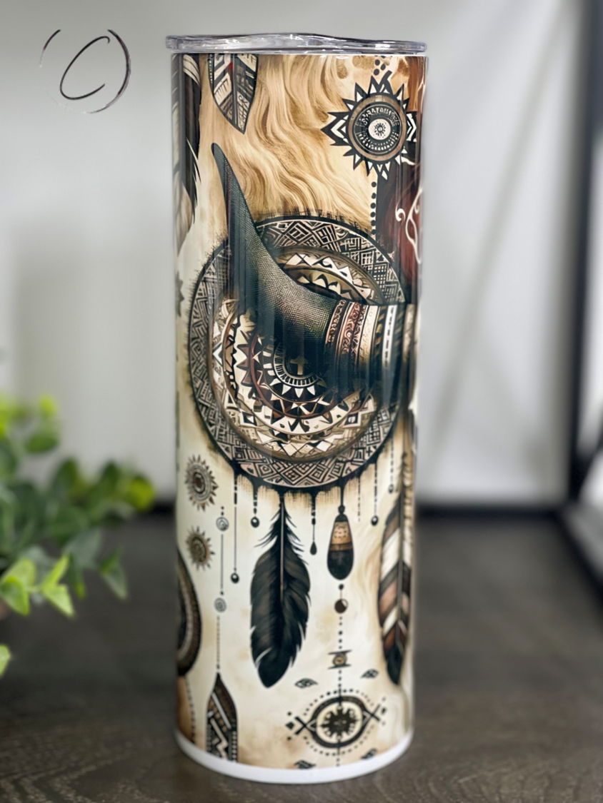 Boho Feather Bull Skull 20oz Skinny Tumbler