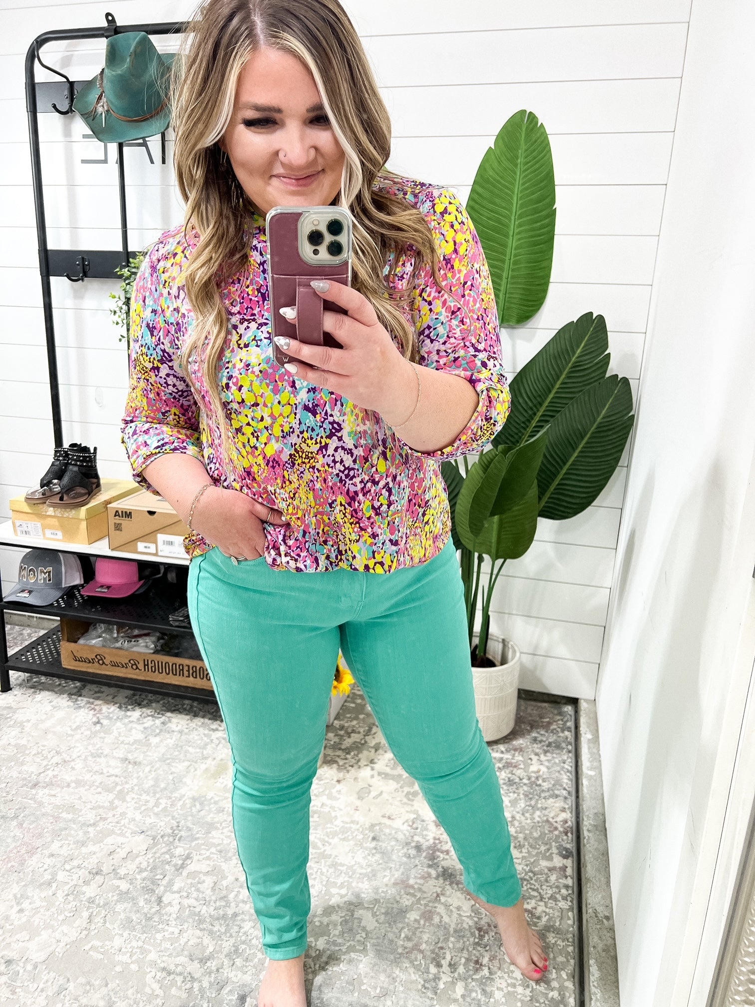Get ready to make a splash with our Bridgette High Rise Garment Dyed Slim Jeans from Judy Blue! With a high rise and slim fit, these jeans offer a flattering silhouette. Plus, the bright aqua color and 4-way stretch will have you feeling confident and comfortable all day.