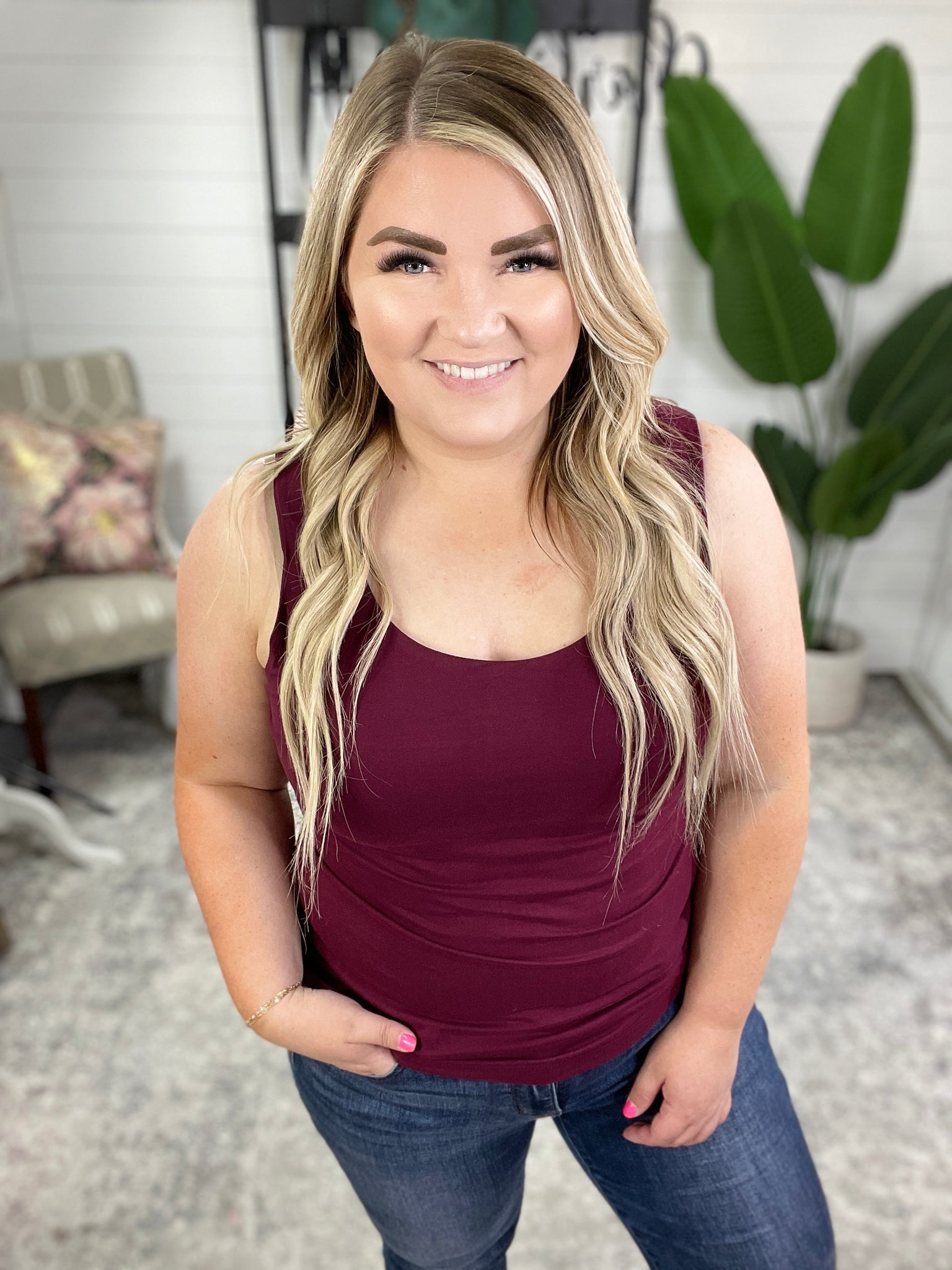 This Casual But Cool Tank is a sleek wardrobe staple. Crafted from buttery soft fabric and lined for a fitted silhouette, its scoop neckline makes it a stylish choice for any season. Look and feel great all day long!
