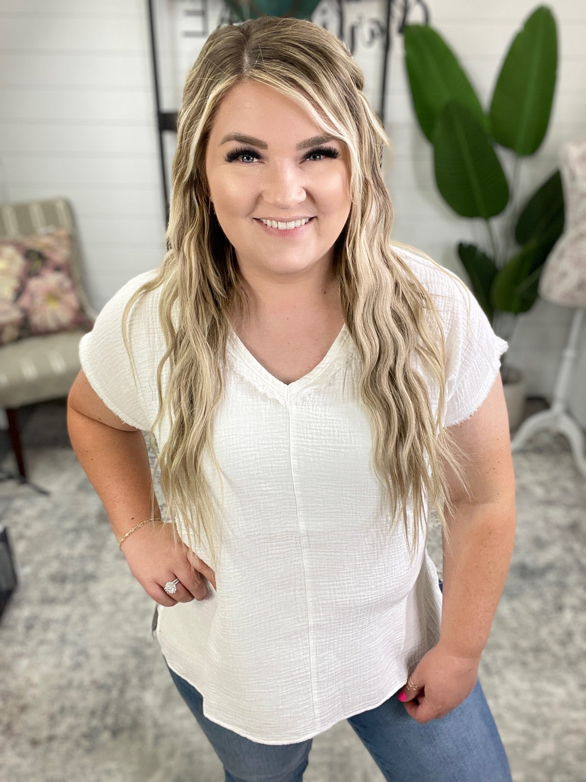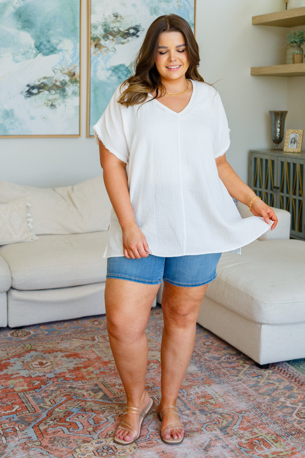 Stay one step ahead of the fashion game with the Catch Me If You Can Top. Crafted from lightweight gauze, this breezy piece features raw edge details, a v-neckline, and dolman sleeves that flow into a flattering relaxed fit. Move in style and feel confident all day long!