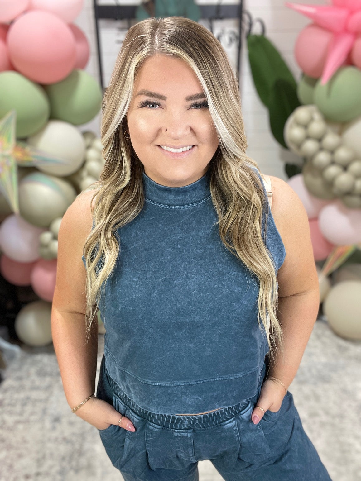 Pump that iron in our Chasing the Gains tank top! This tank top is perfect for hitting the gym or just lounging around in style. With a unique mineral wash and relaxed fit, you'll stand out while staying comfy. Plus, the banded mock neckline, sleeve cuffs, and hem add a trendy touch.