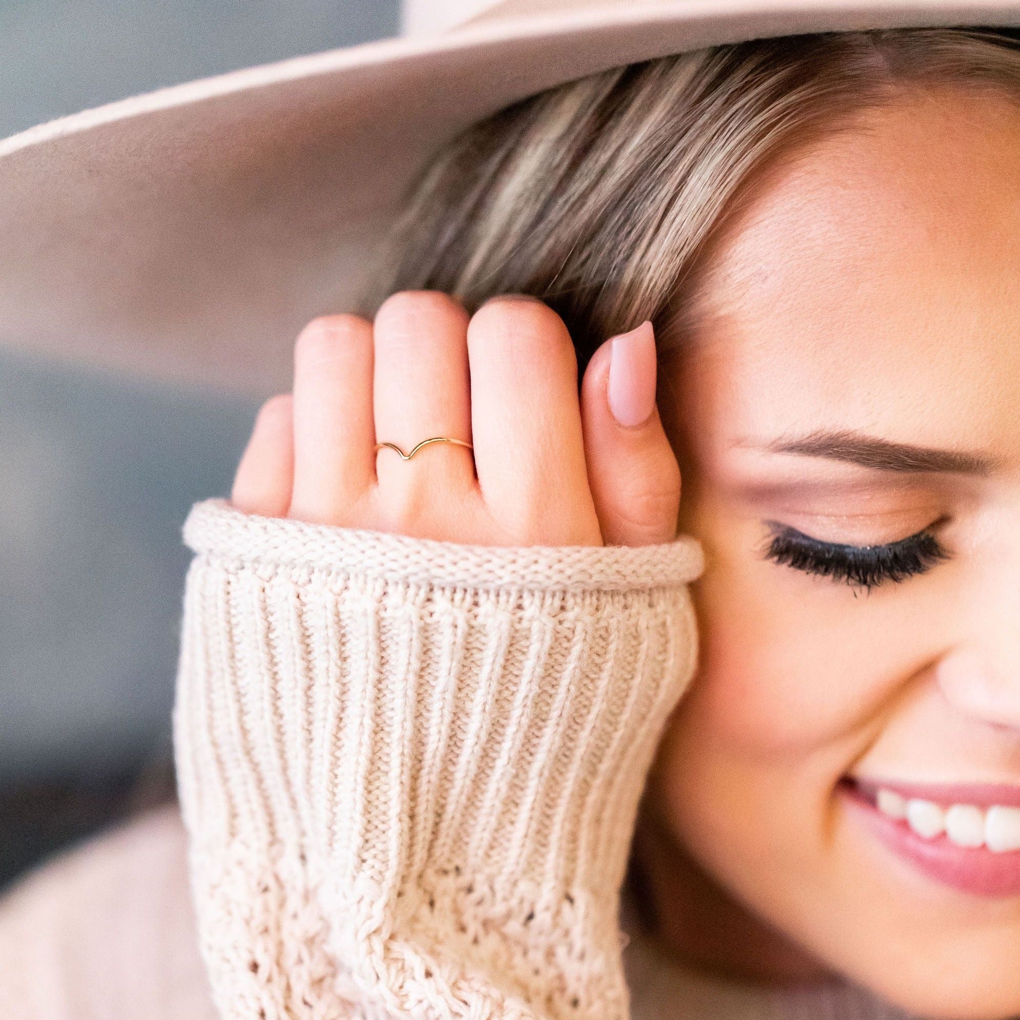 Petite, minimalist chevron stacking ring in your choice of Sterling Silver, 14k Gold Fill and 14k Rose Gold Fill. Wear just one or stack them with any of our other stacking rings... the possibilities are endless!