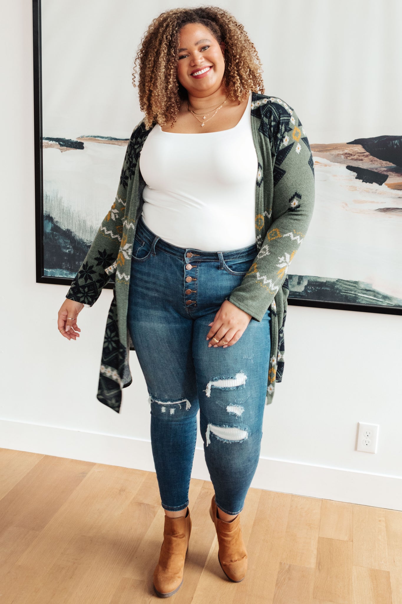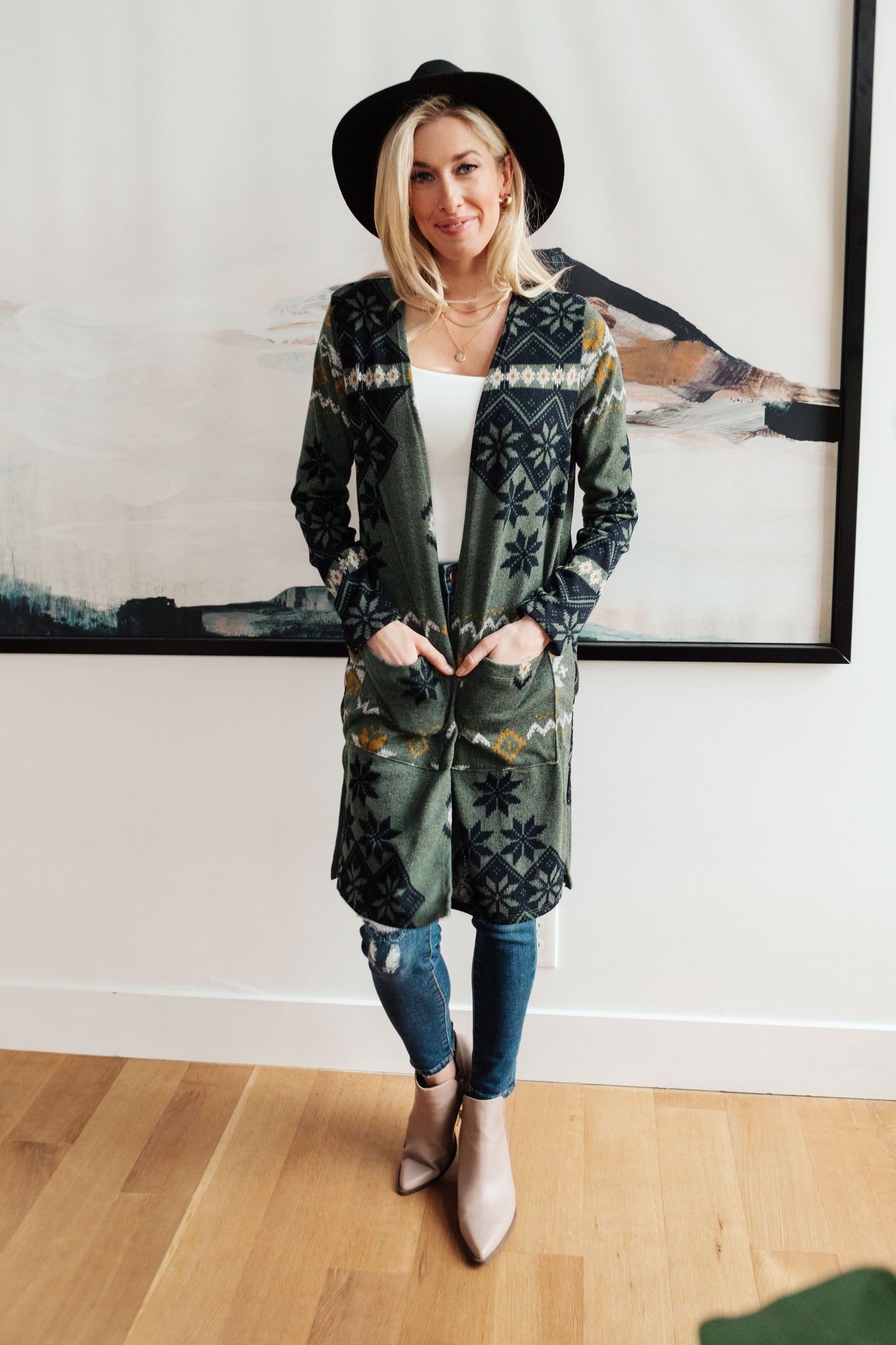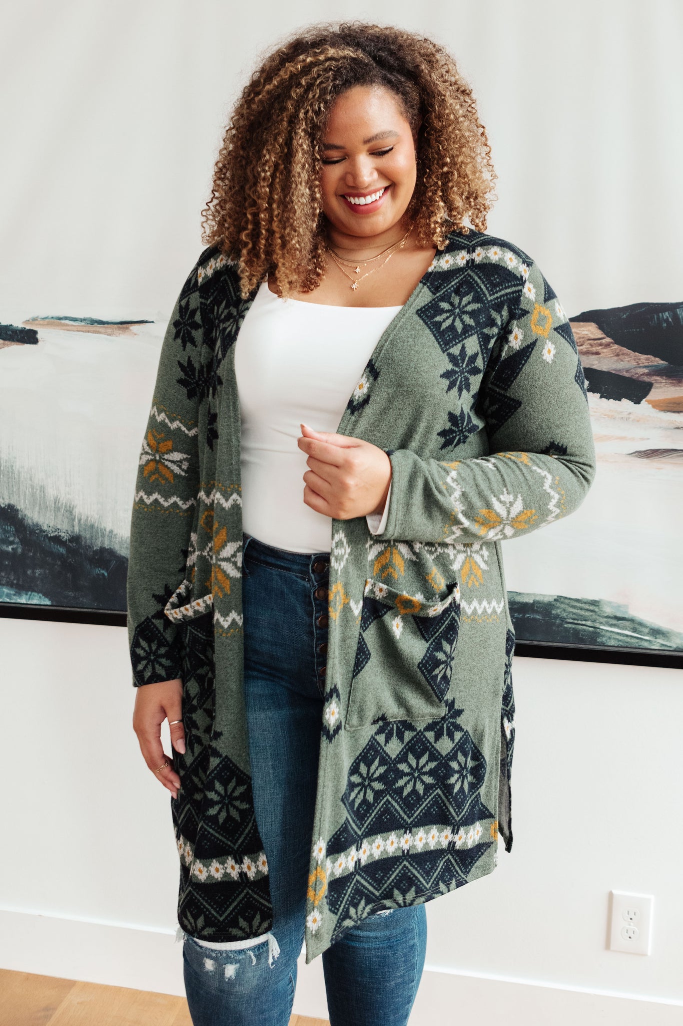 'Twas The Night Before Christmas and Santa is just around the corner! This cardigan just screams that you're ready for a cozy holiday. The Christmas Night Cardigan is great to layer over a simple top & jeans or even with pajamas! Featuring square pockets & a side slit detail.