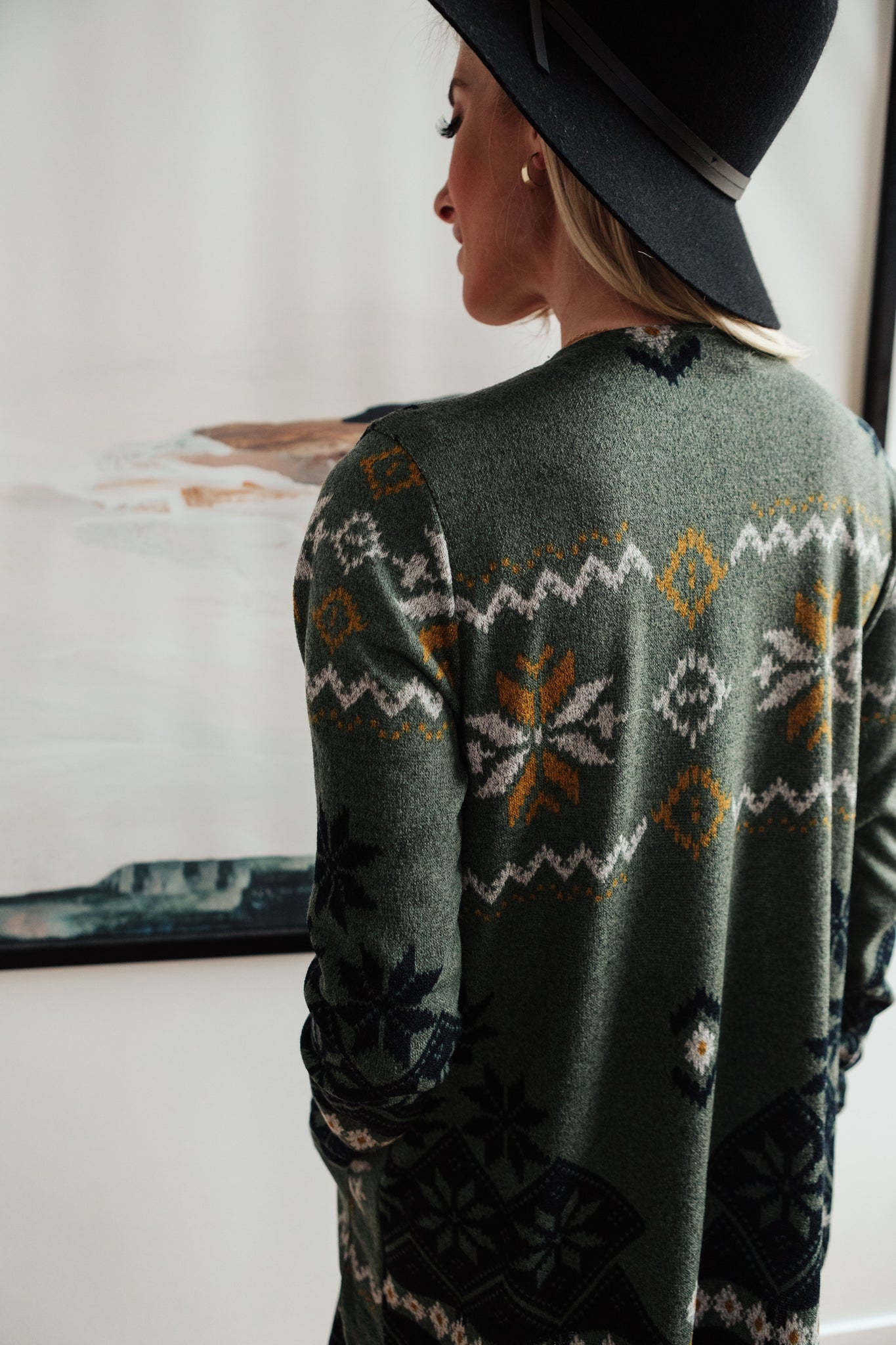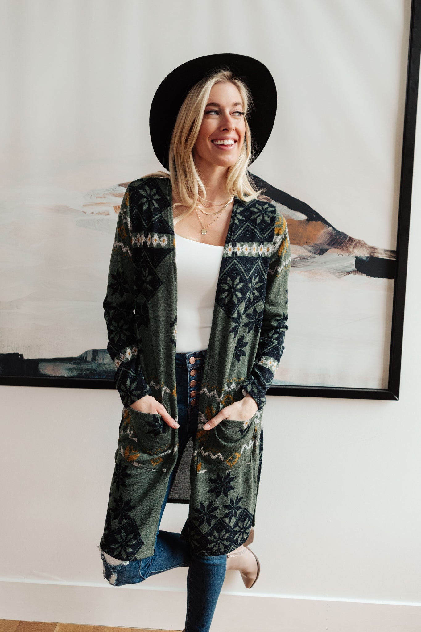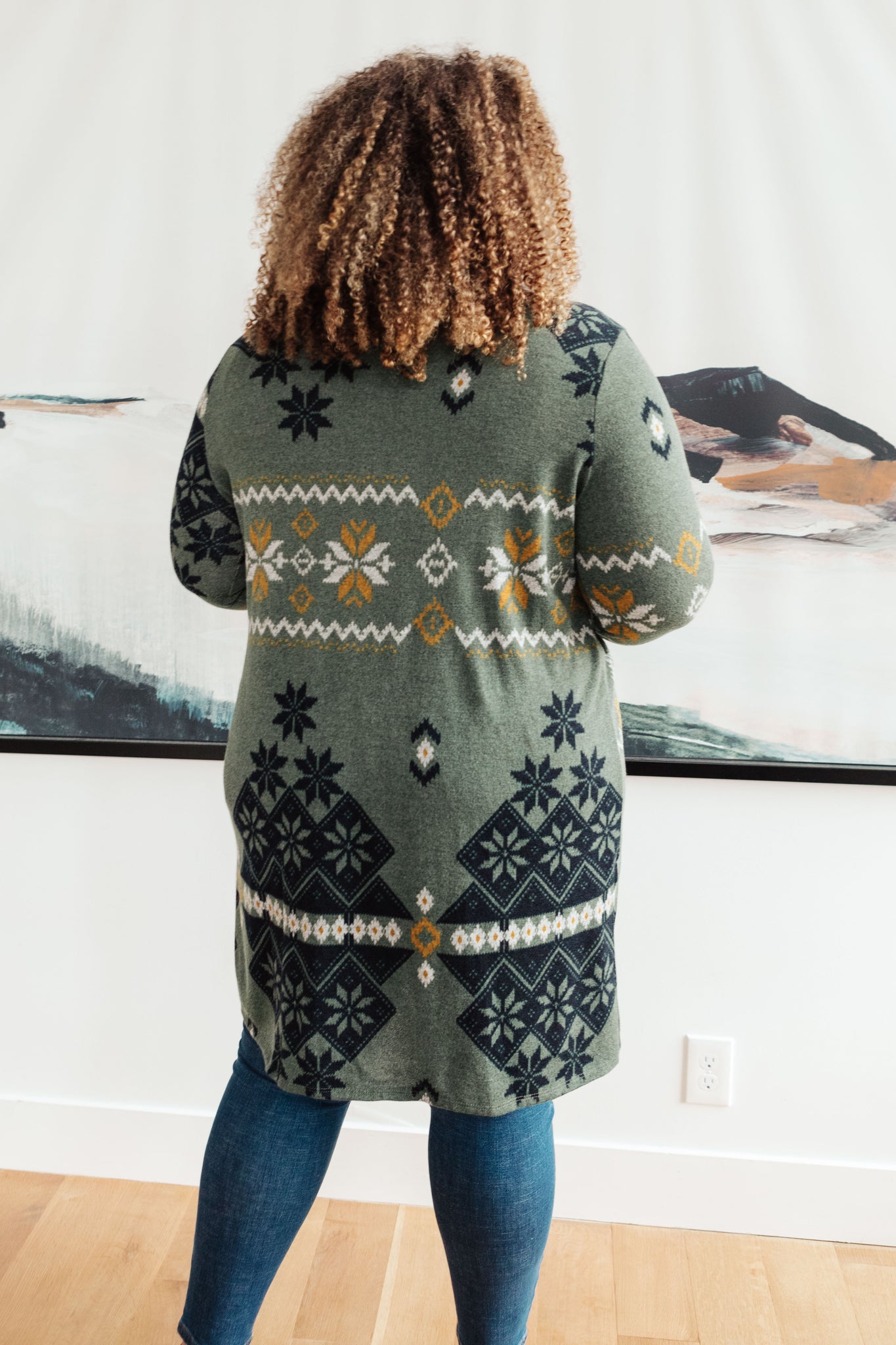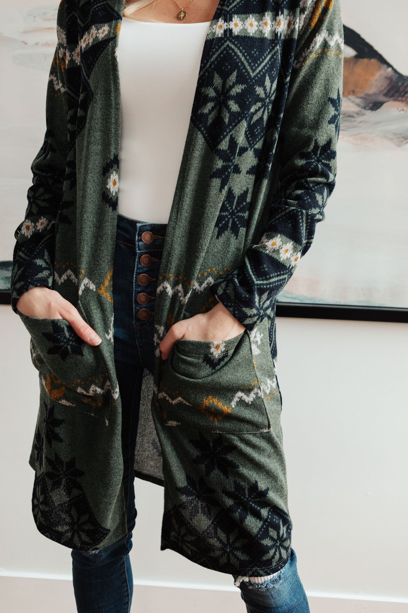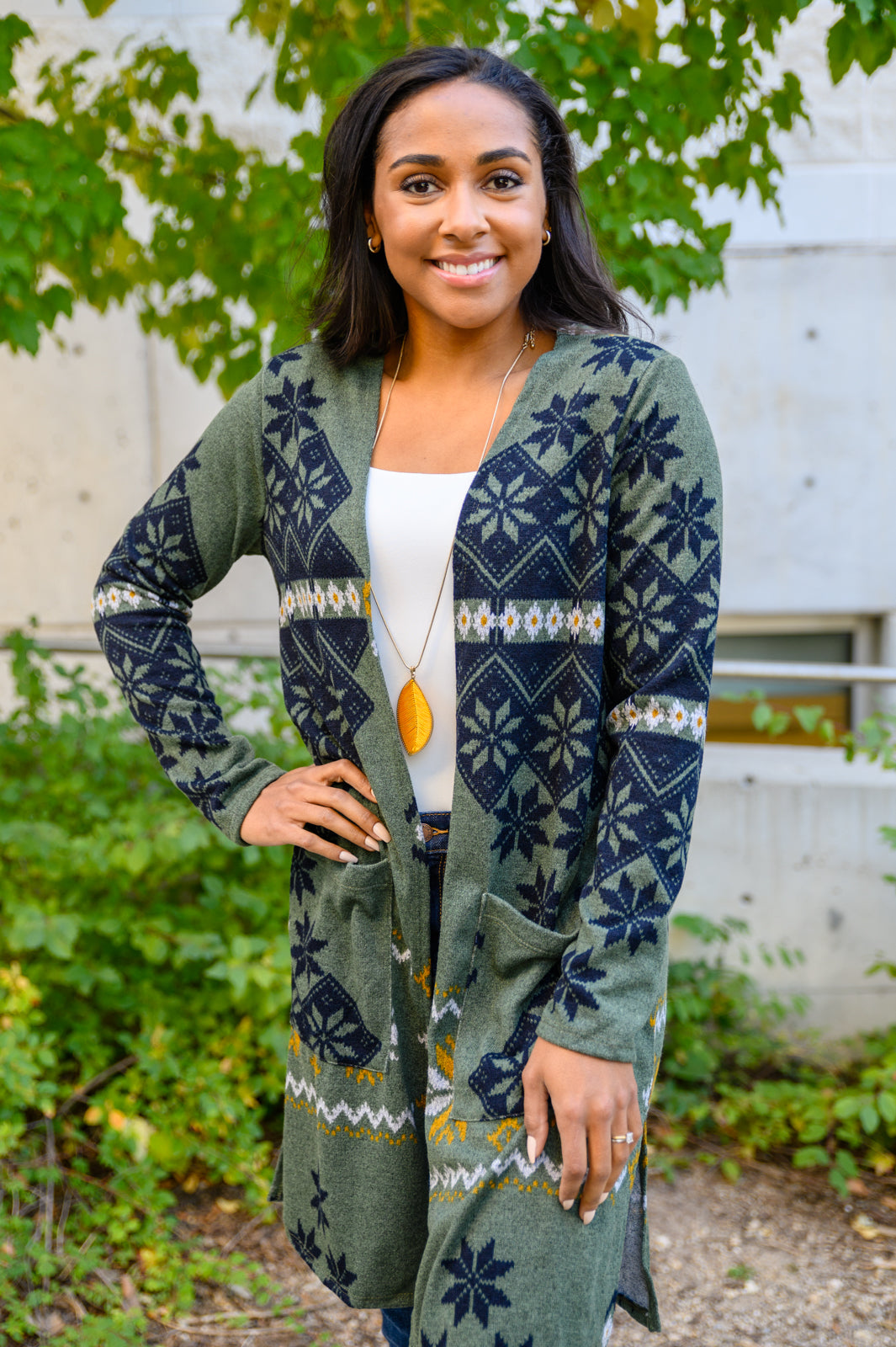 Keywords: Cardigan, Green, Christmas, Snowflake, Warm