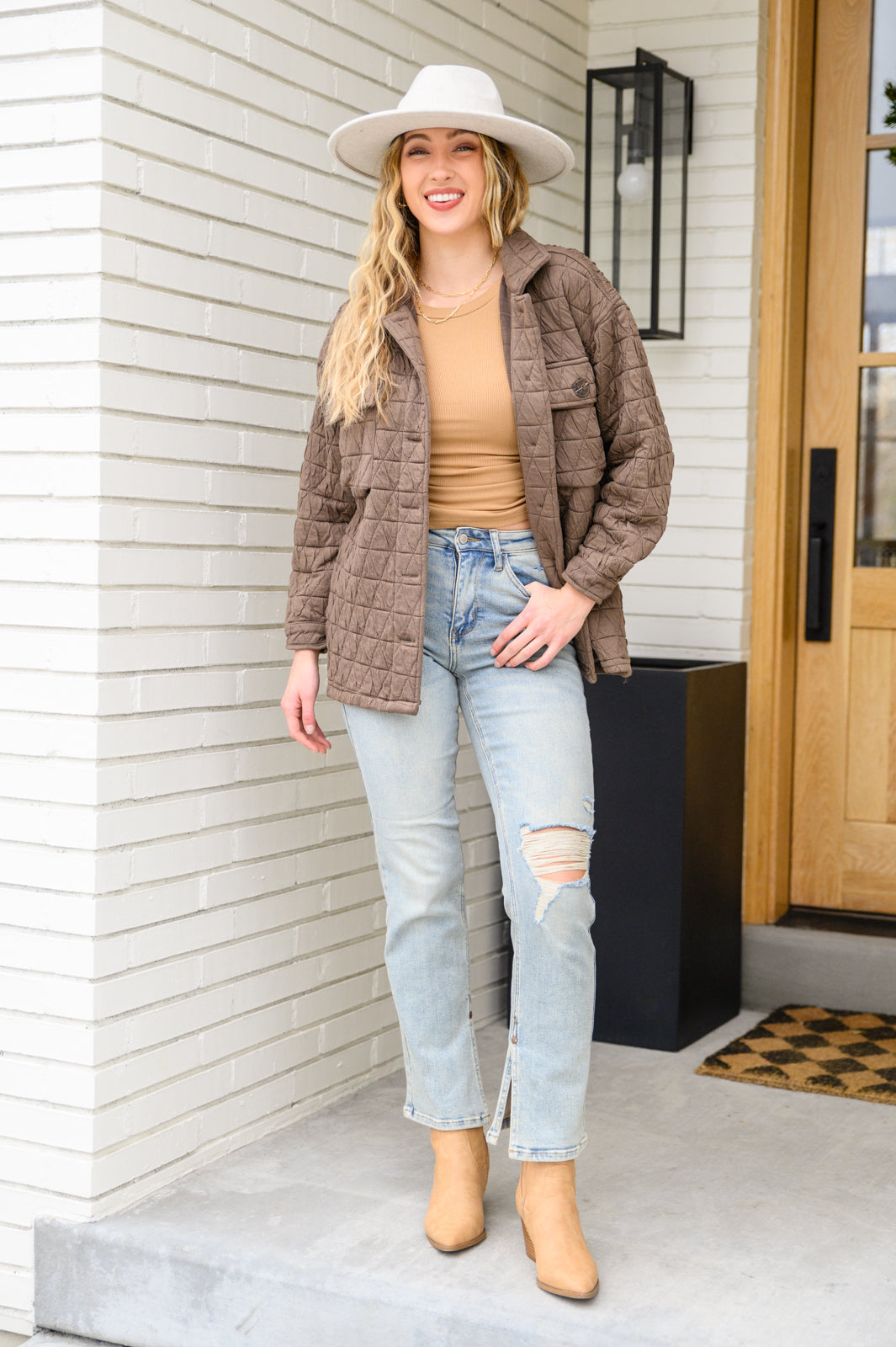 Fall/Winter fashion wouldn't be the same without easy yet fashionable pieces like the Coming Back Home Jacket In Mocha! This toss-on jacket features a textured, quilted design that shapes a collared neckline, dropping down into a functional button front. A straight-cut relaxed bodice supports slouchy long sleeves with drop shoulder detailing that ends at functional button cuffs and two front chest flap pockets.