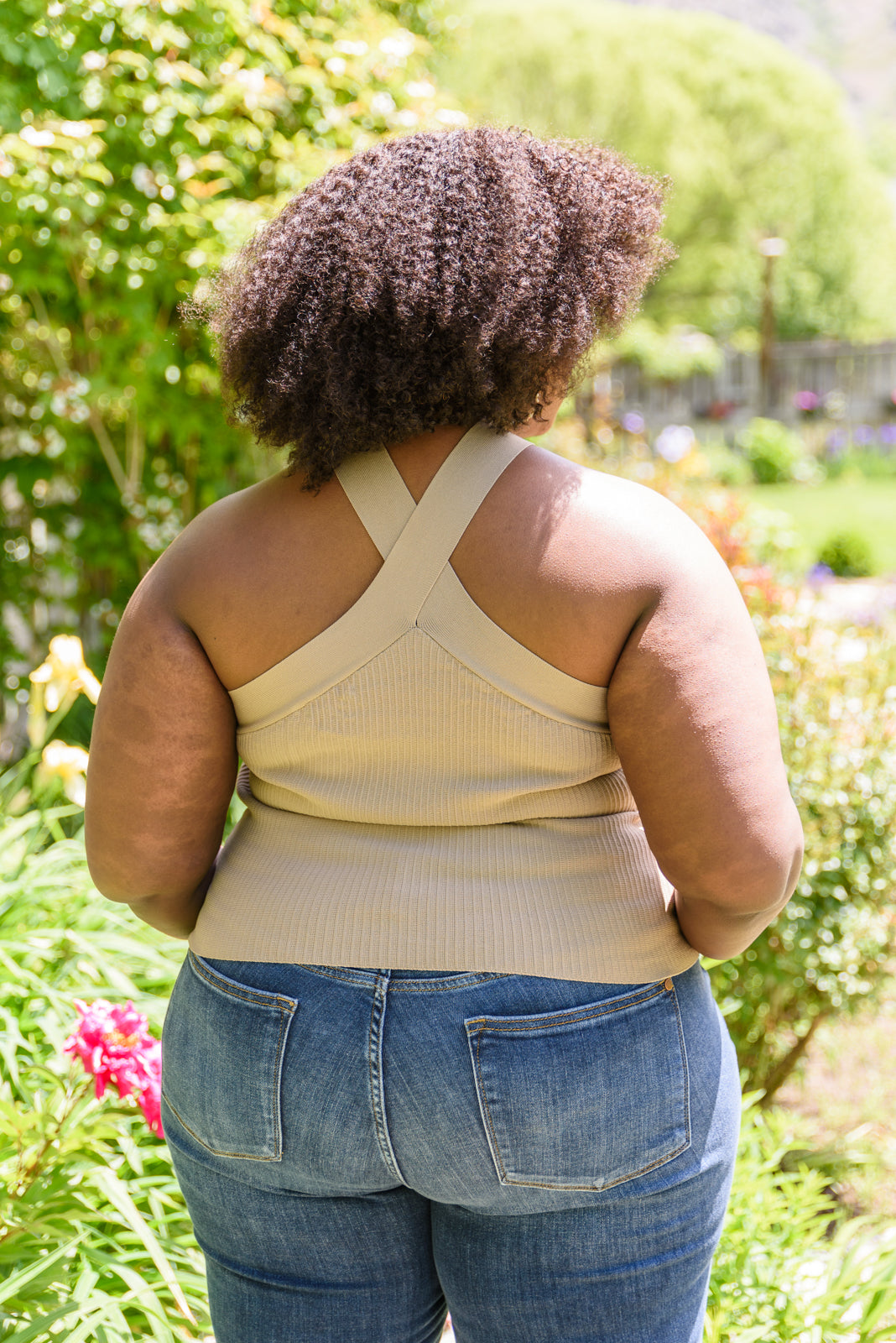 The Crossways Halter Top can elevate your outfit with its simple yet stunning details! Featuring a criss cross halter style neckline, stretchy thick rib knit, and body hugging silhouette. Pair this cute top with simple denim and heels for a modern and on trend look!