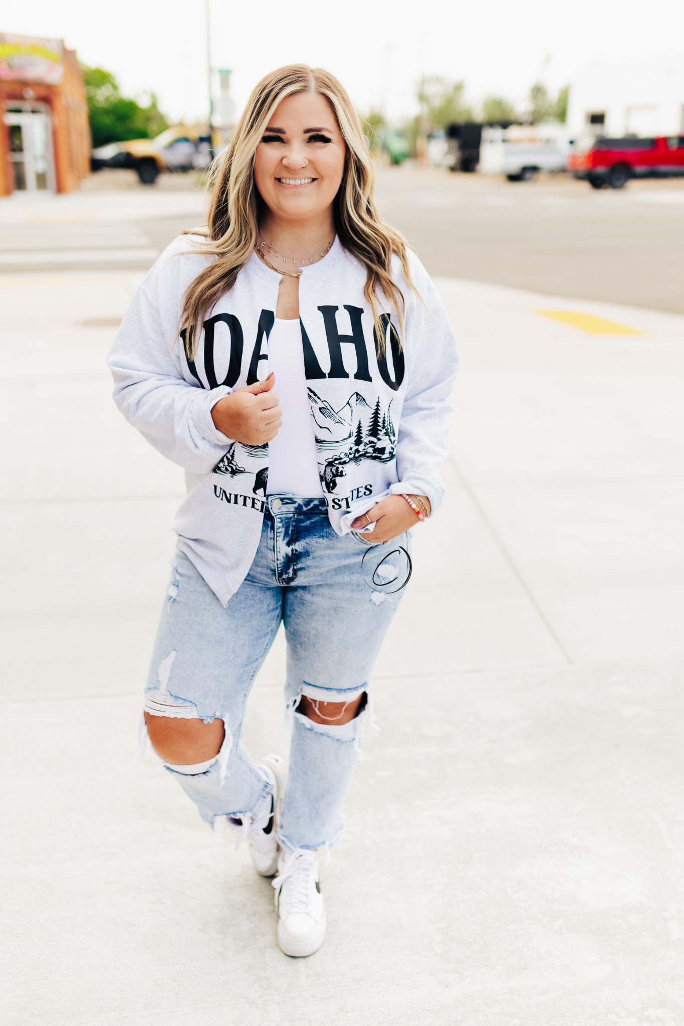 - Printed on Ash Gray Sweatshirt, black ink and cut right down the middle.