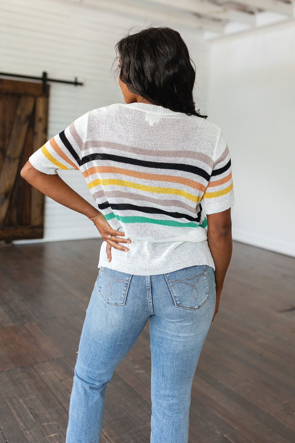 Be inspired by the past with our Derby Nights Retro Striped Top! Featuring a light sweater knit fabric, a comfortable fit, a patch pocket, and a timeless pattern of retro stripes, this top is truly unique. Step out of the ordinary and into style!