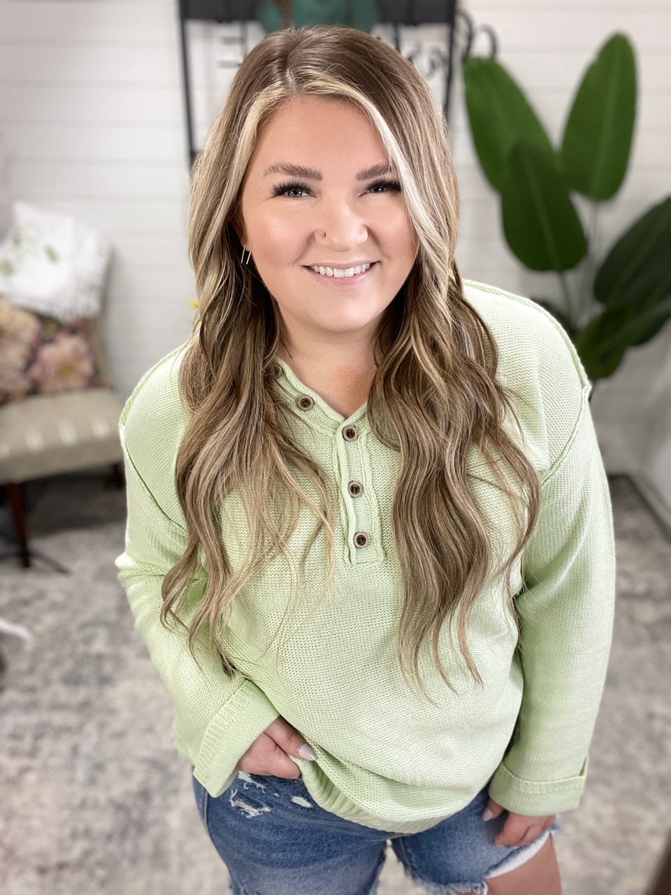 Upgrade your sweater game with our Do It On The Daily Henley Sweater! Featuring functional buttons, a V-neck, and an open weave design, this sweater is both stylish and functional. The sewn cuffs and rolled trim add extra flair, while the light stretch provides all-day comfort.