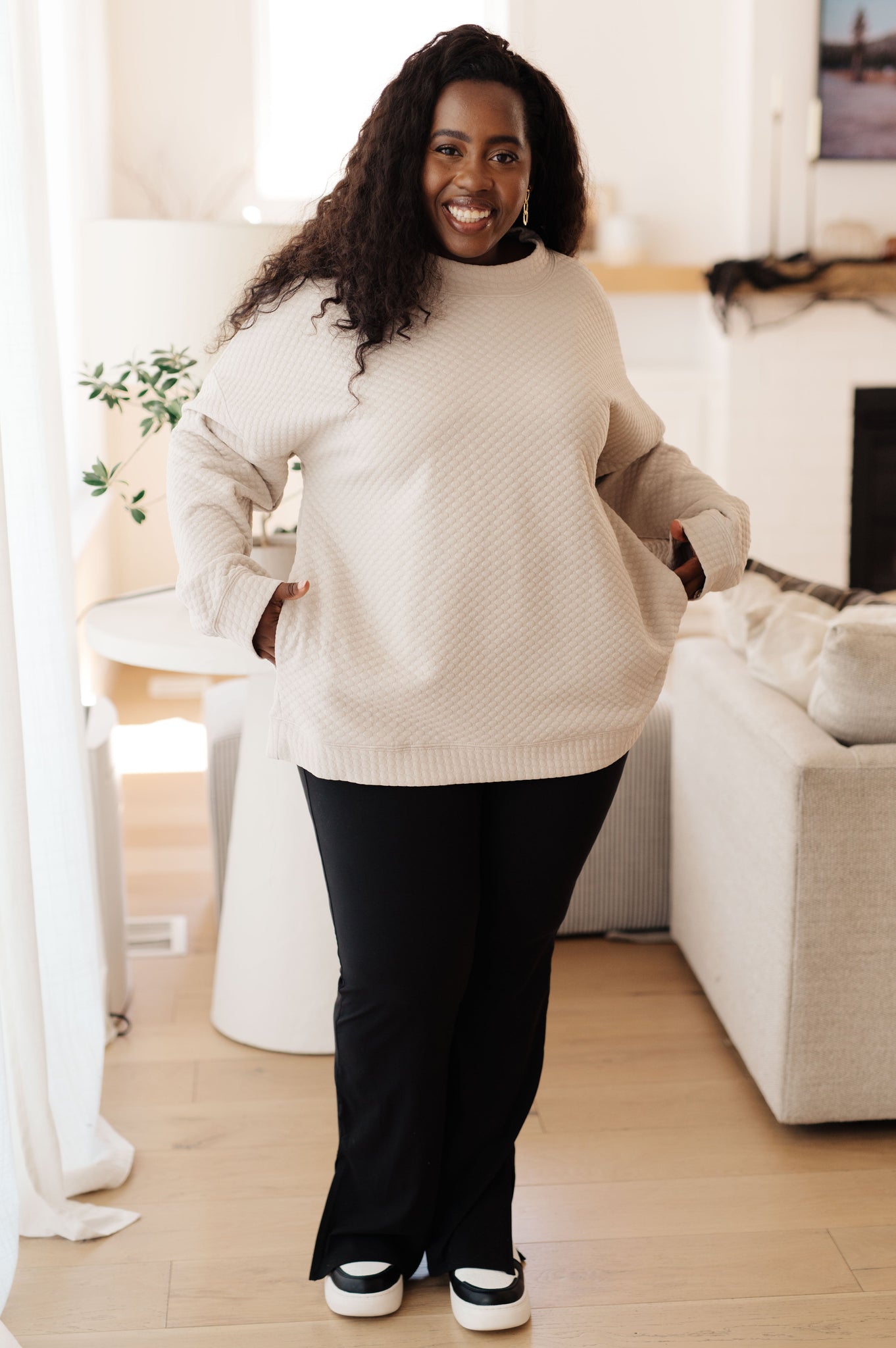 Layer up in style with our Don't Change Anything Mock Neck Pullover! This pebble textured knit pullover will keep you warm and features a mock neckline with side seam pockets. A great, easy layer for any look.