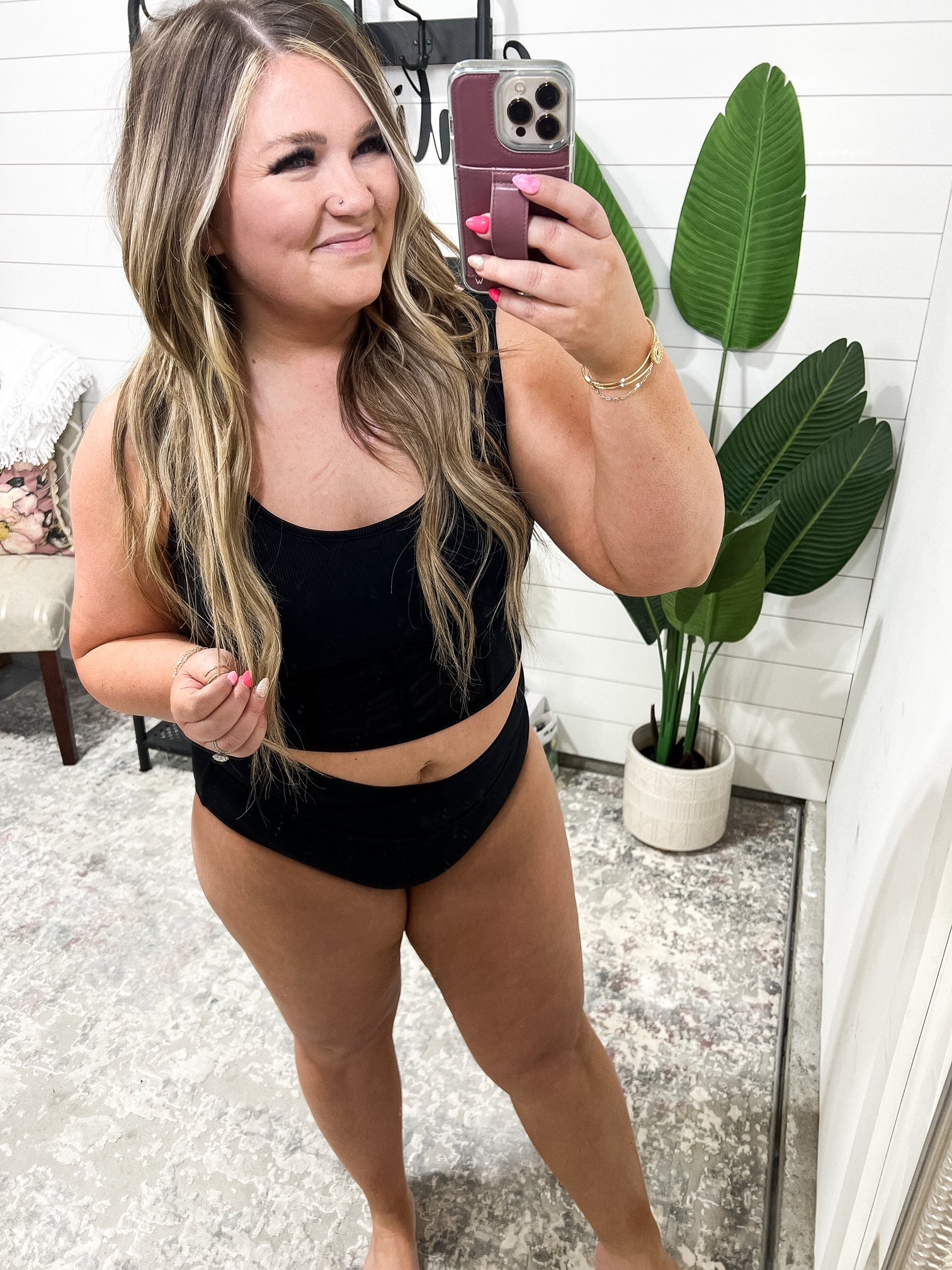 Soak up the sun in style with our Down the Block, On A Beach Two Piece Swimsuit. This playful ribbed design features removable cups, mesh details, and an underband for a secure fit. The V-waistline and cheeky fit add a fun touch to the lined swimsuit. Perfect for hitting the beach!