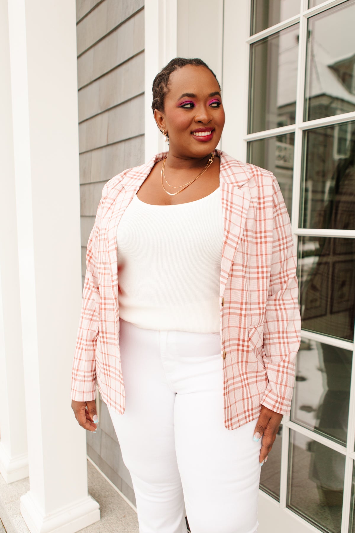 Dressed in Plaid Blazer In Pink