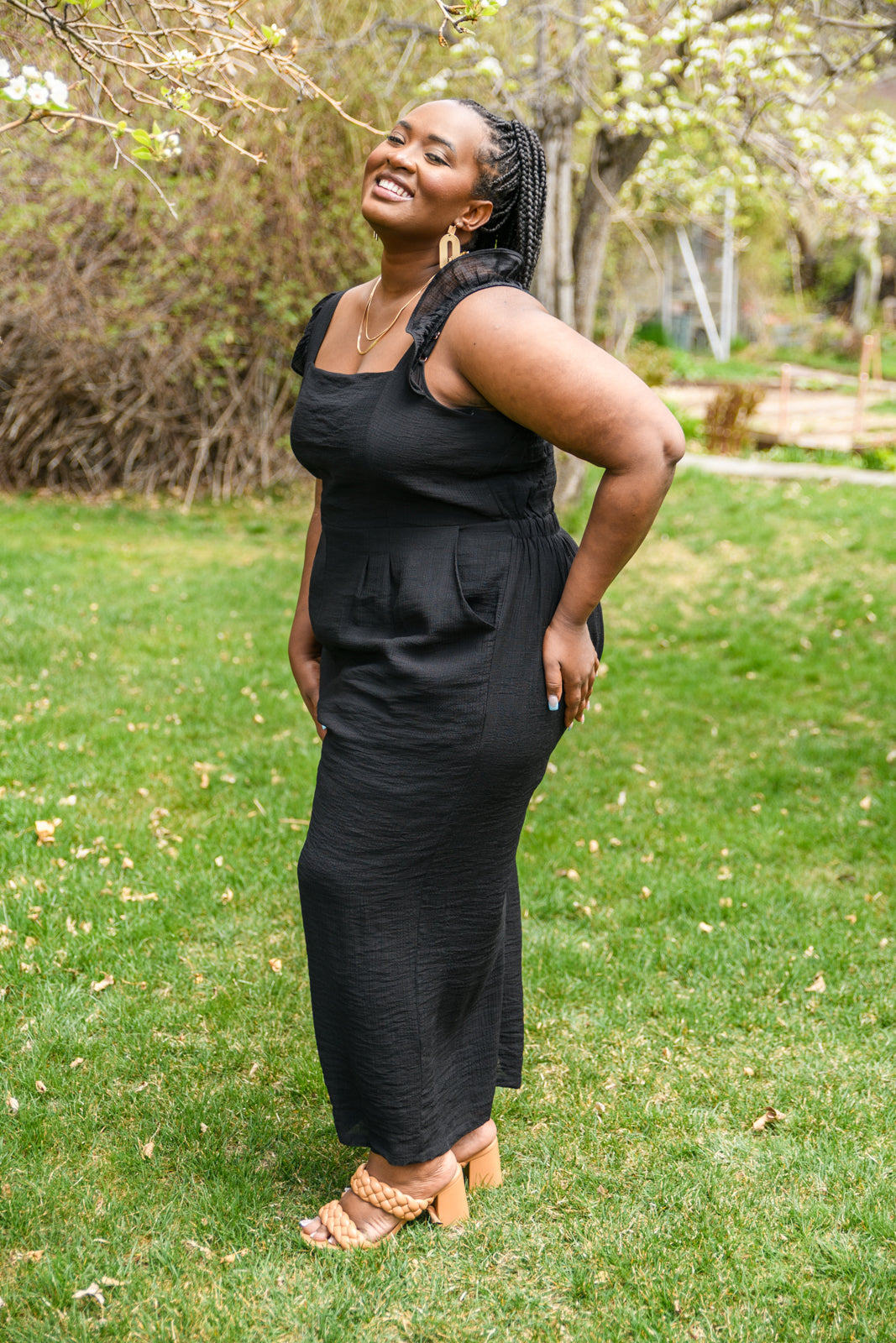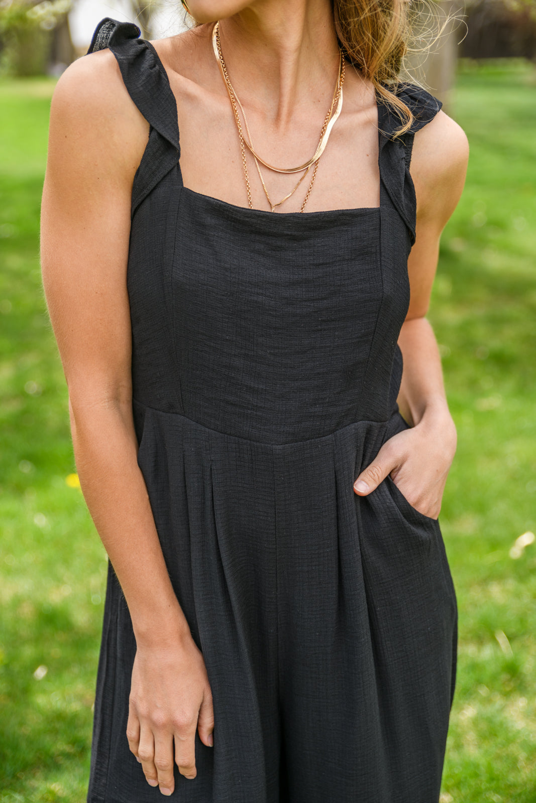 Keywords: Jumpsuit, Black, Ruffle, Wide Leg