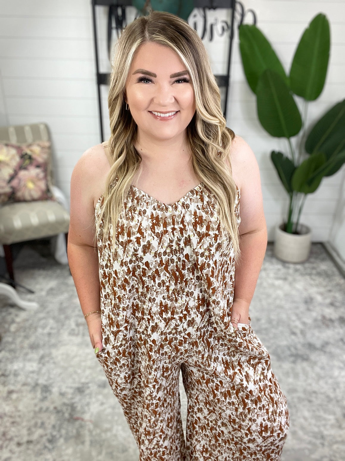 Look dazzling at your next festival in the Favorite Festival Jumpsuit! This lightweight and textured woven jumpsuit features a vibrant boho pattern, v-neckline, spaghetti straps, pockets, and wide leg. With its flattering design and breezy silhouette, you'll be sure to turn heads.