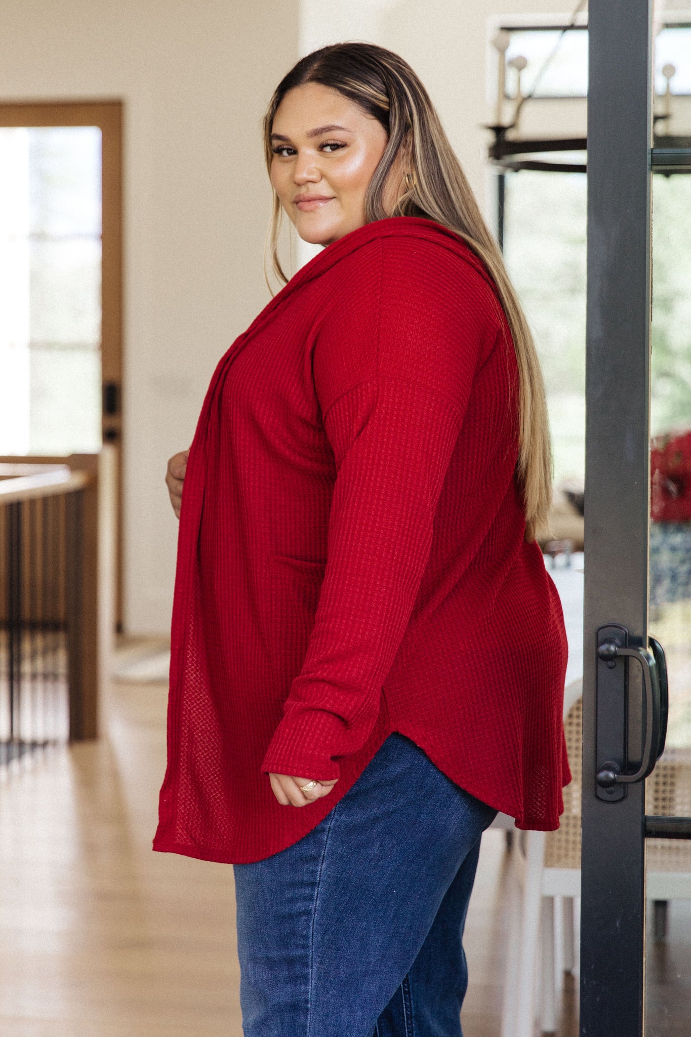 Stay comfortable and cozy with the First Things First Hooded Cardigan! Made of soft and lightweight waffle knit, this cardigan features a generous hood, an open front, and handy pockets, making it an effortless and easy layer for any occasion. You'll love how warm and inviting it feels!
