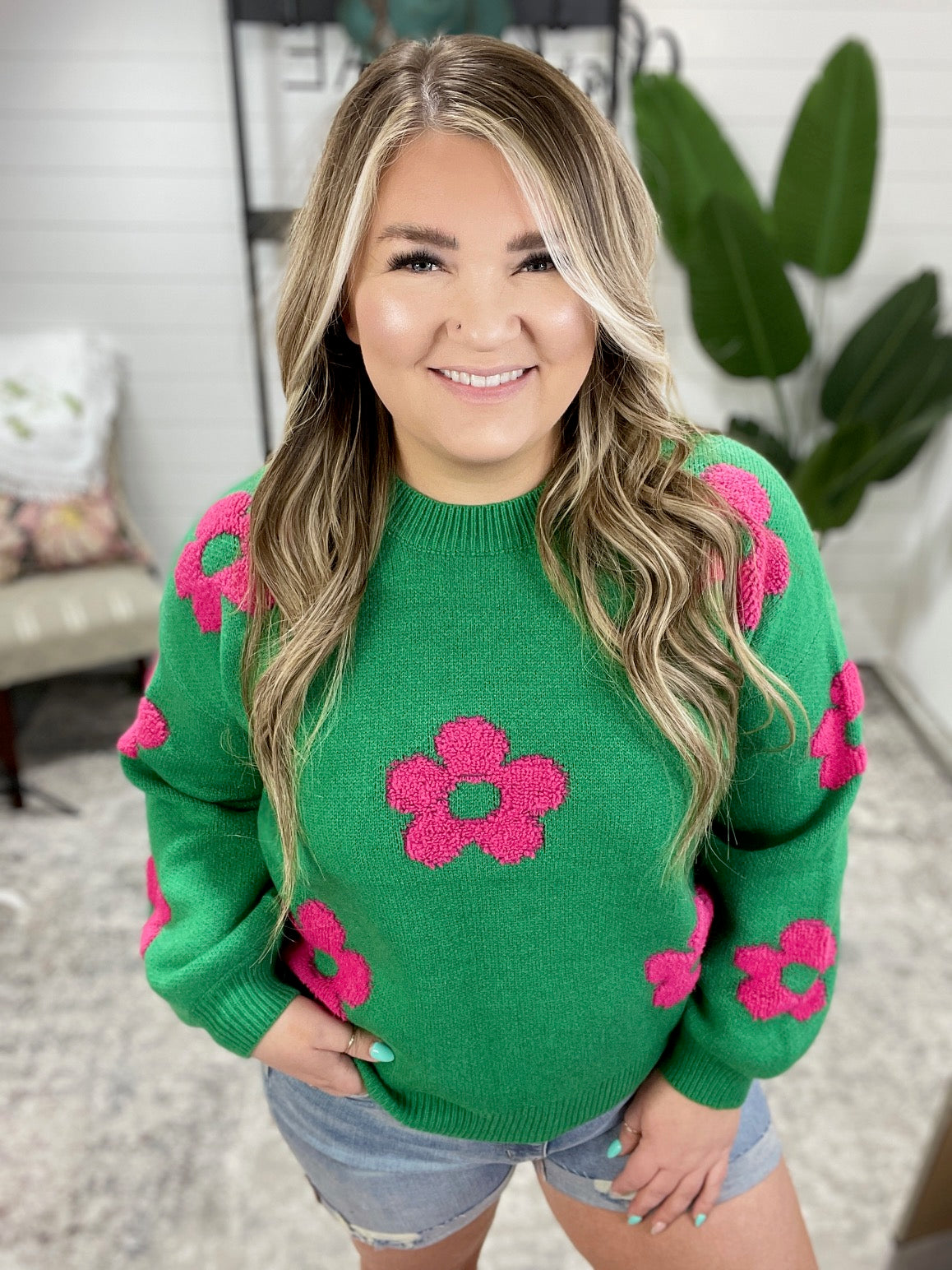 Get cozy in our Follow Your Heart Drop Shoulder Sweater. Made with a soft sweater knit, this crew neck pullover is perfect for chilly days. Embellished with tufted pink flowers, it's both bright and fun. Follow your heart and add this playful piece to your wardrobe.