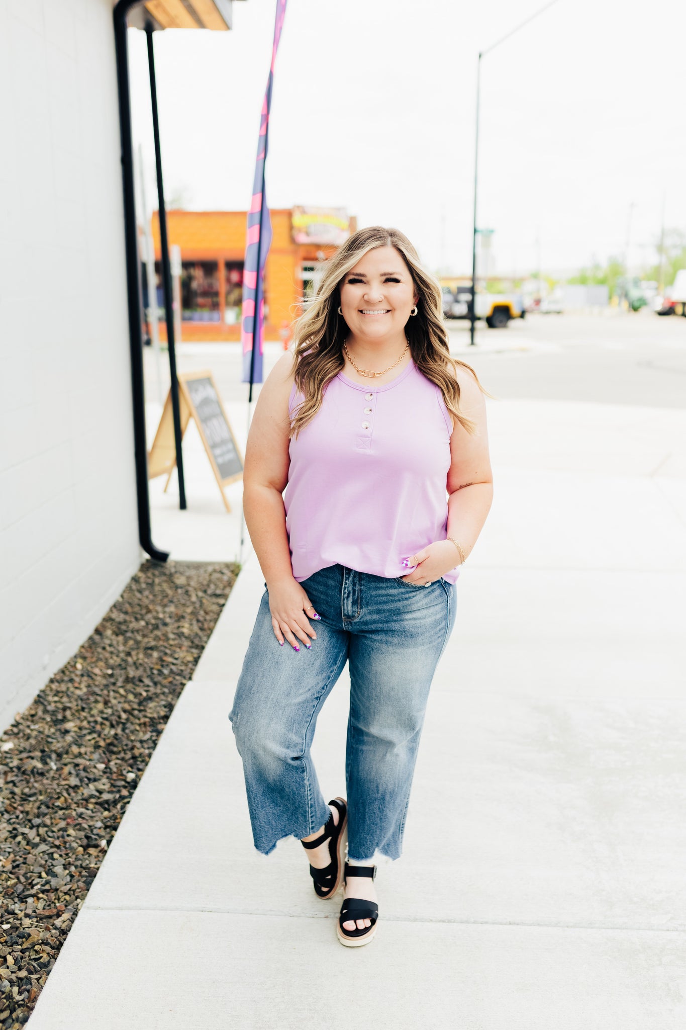 Stay comfortable and stylish in this terry tank top, featuring a subtle front button details for a touch of charm! The soft, breathable fabric offers a relaxed fit, perfect for casual days or layering. With its easygoing design and versatile style, this tank is a must have addition to your wardrobe this season! Stretchy, knit.