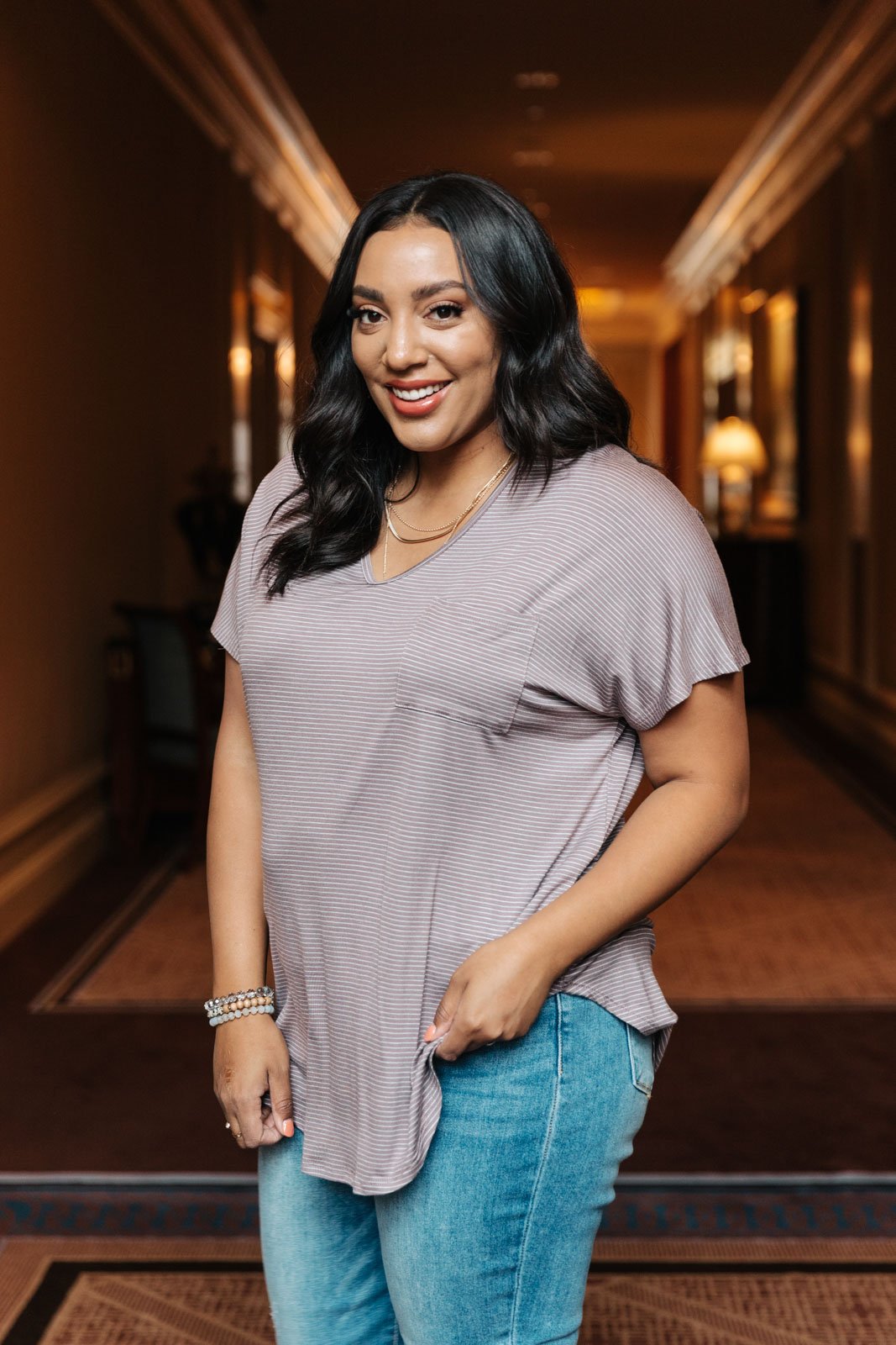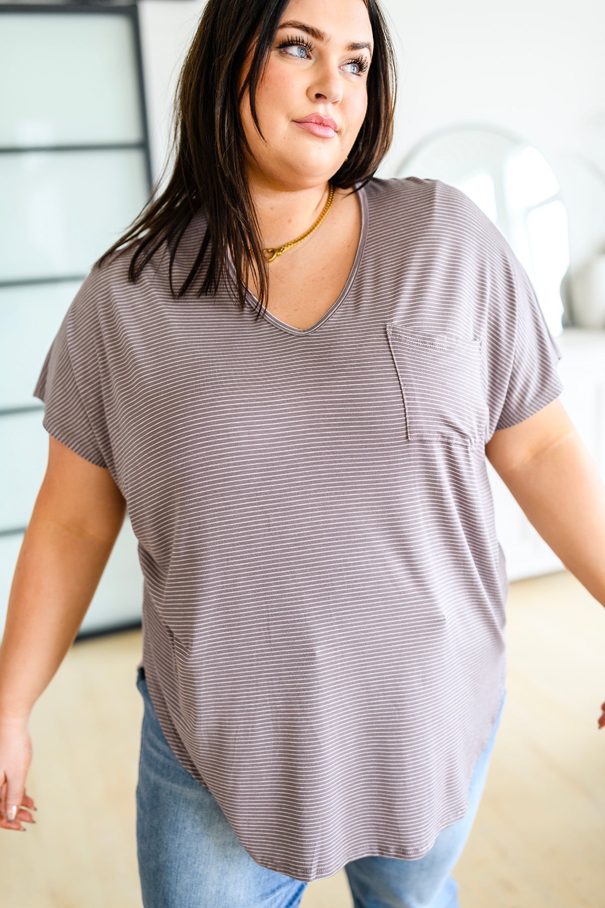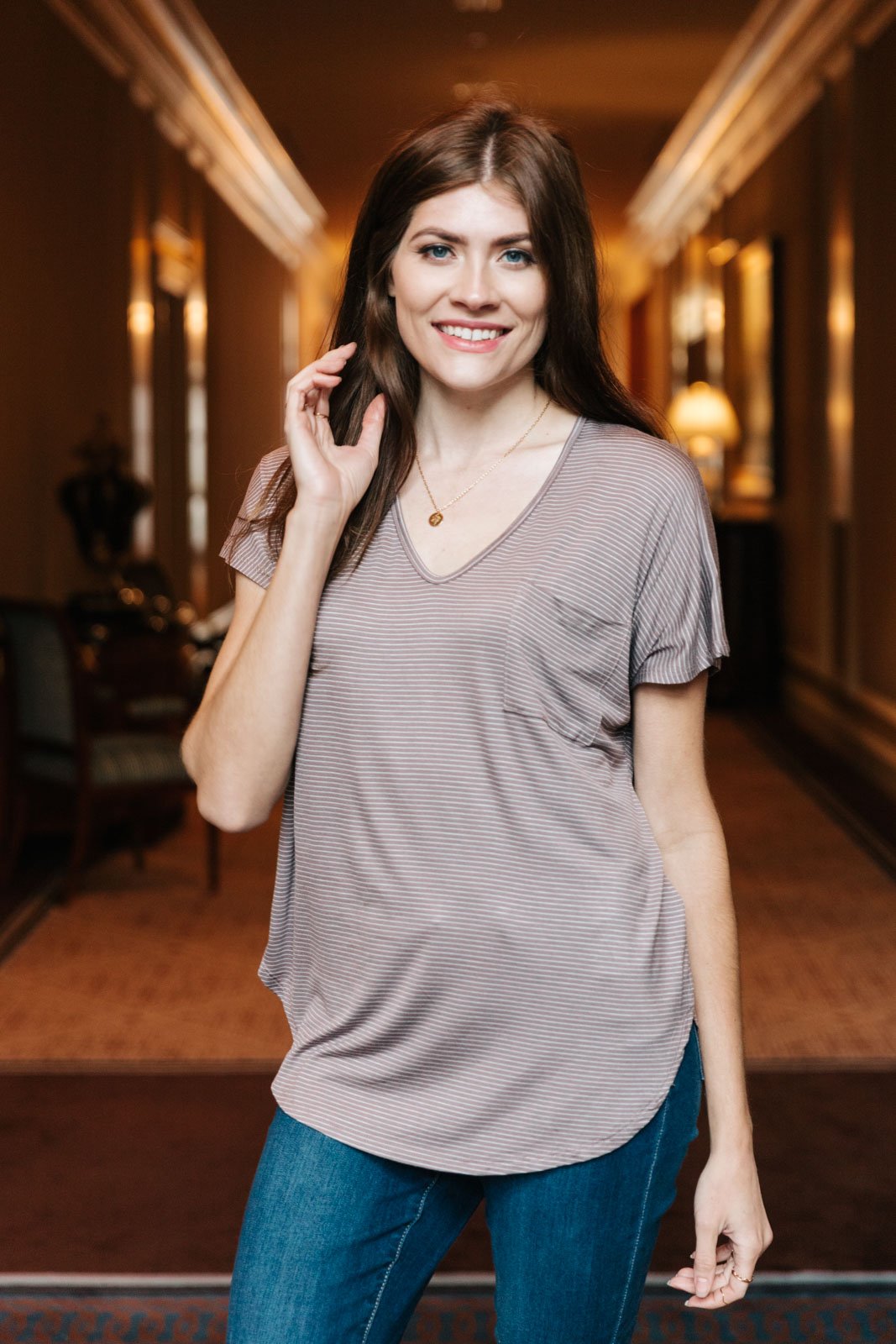 Soft, breathable & stylish. This effortless Tee is made to throw on and go. With a v-neck line, front patch pocket & curved hem, you can pair this top with athleisure separates, denim, and layer over your favorite sports bra or bralette. Look good feel good in your go-to top for lightweight comfort.