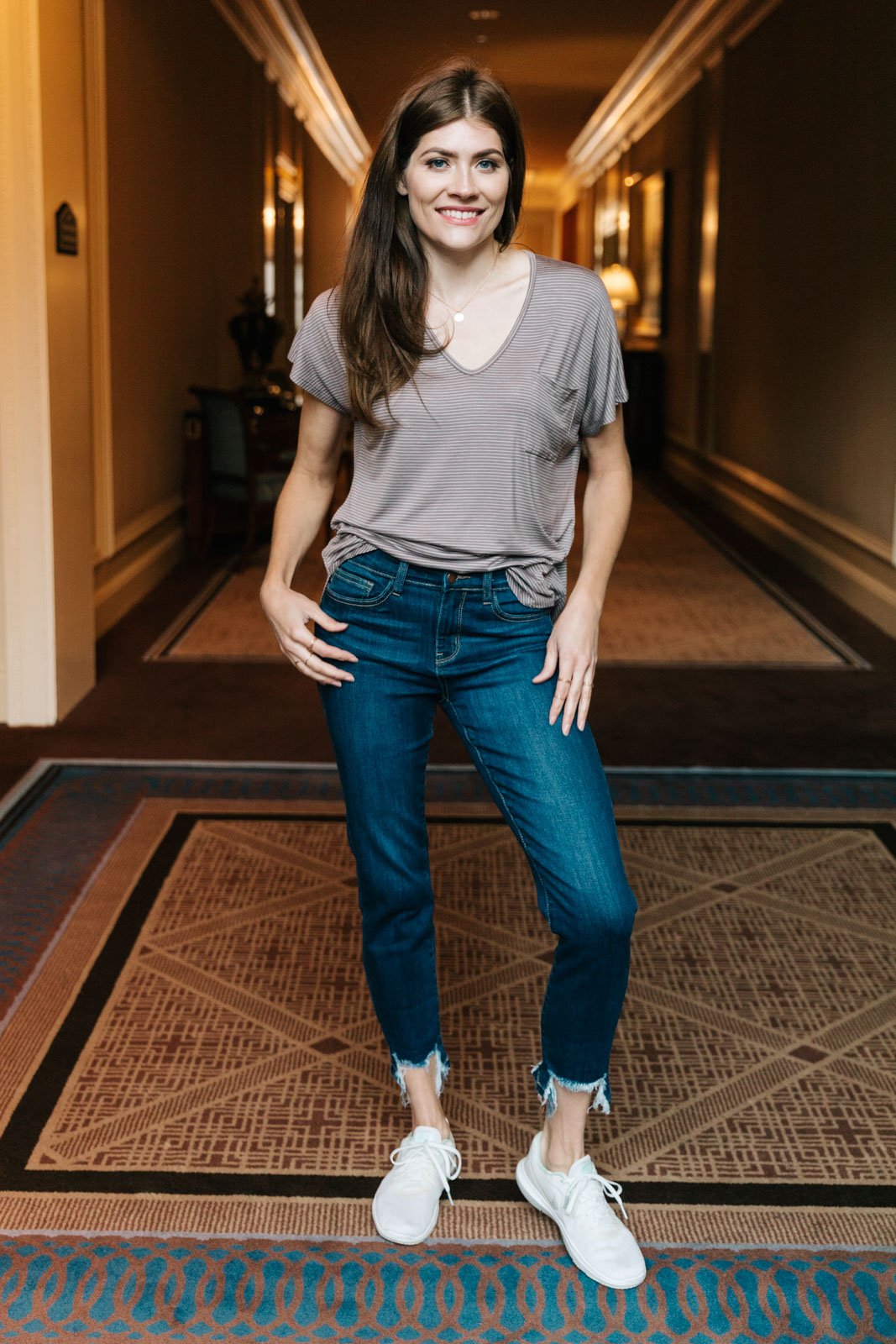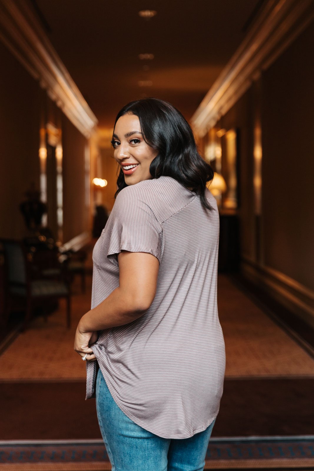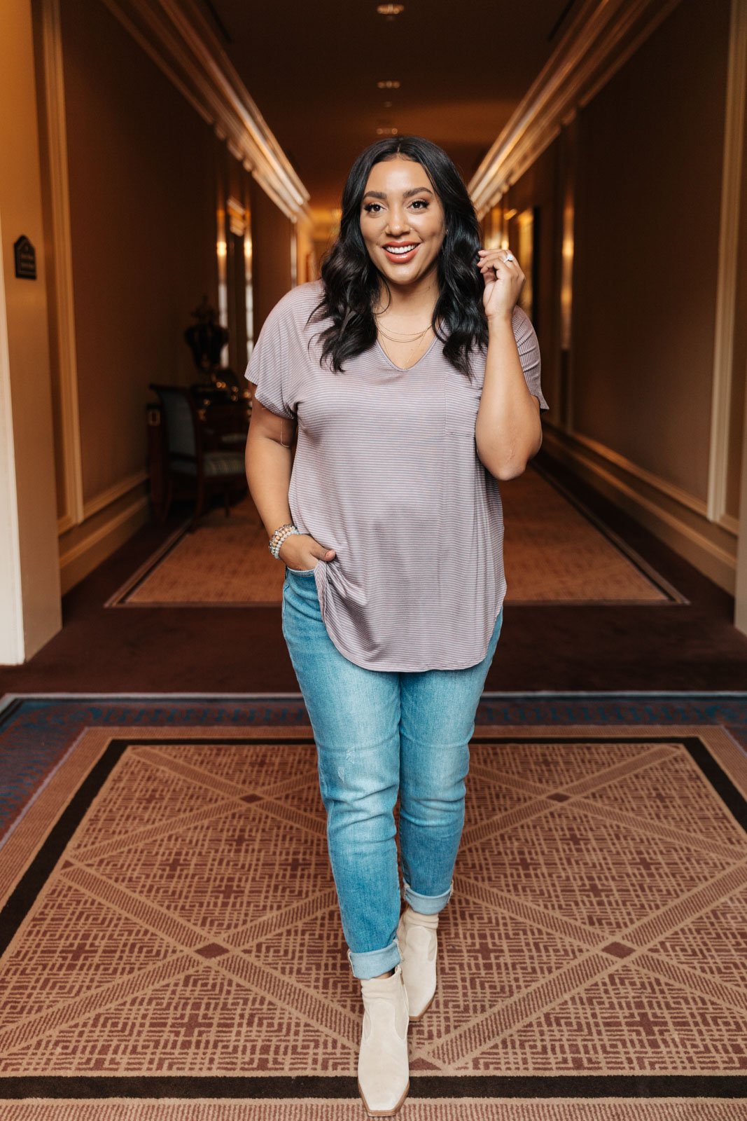 Soft, breathable & stylish. This effortless Tee is made to throw on and go. With a v-neck line, front patch pocket & curved hem, you can pair this top with athleisure separates, denim, and layer over your favorite sports bra or bralette. Look good feel good in your go-to top for lightweight comfort.