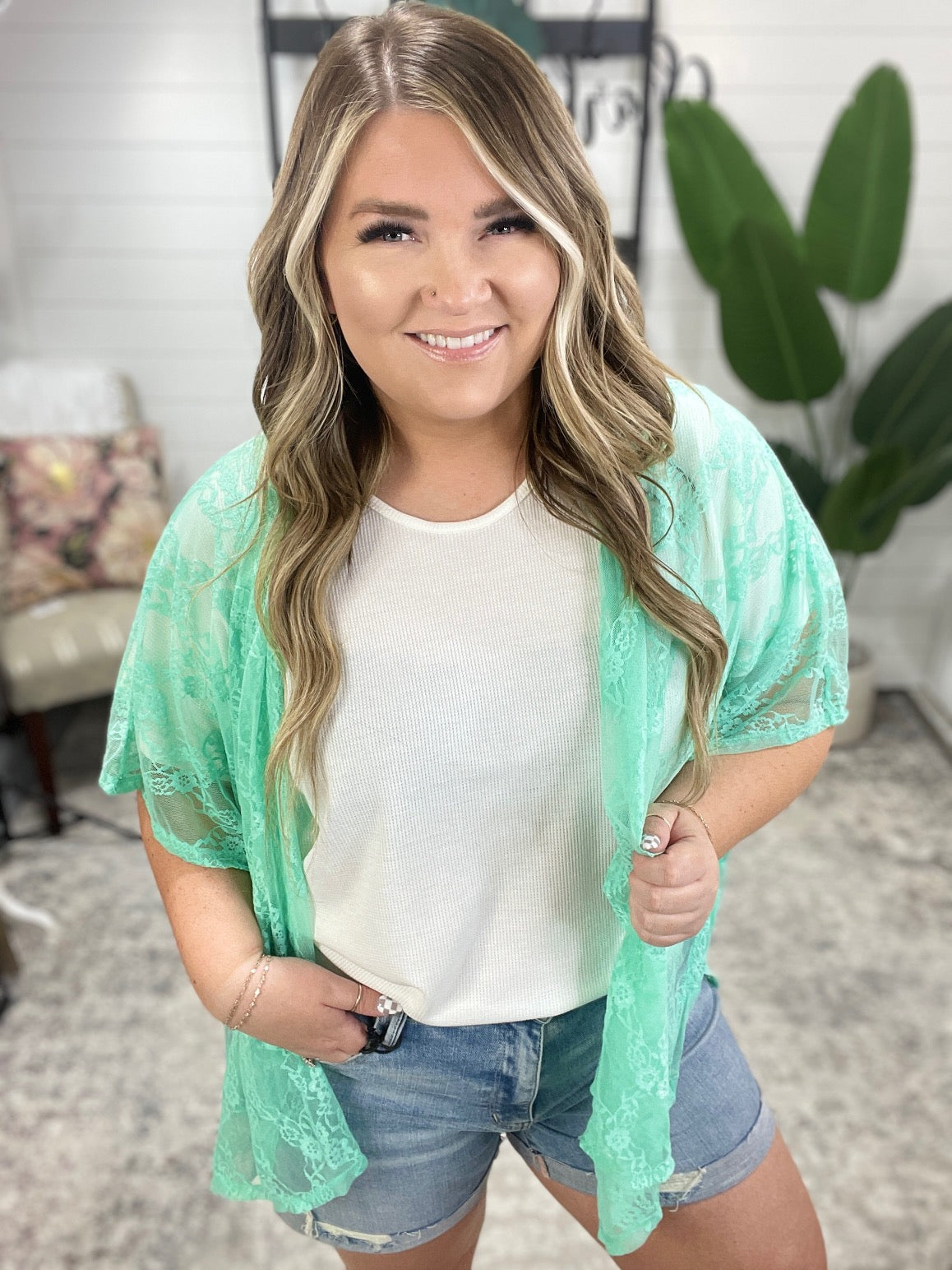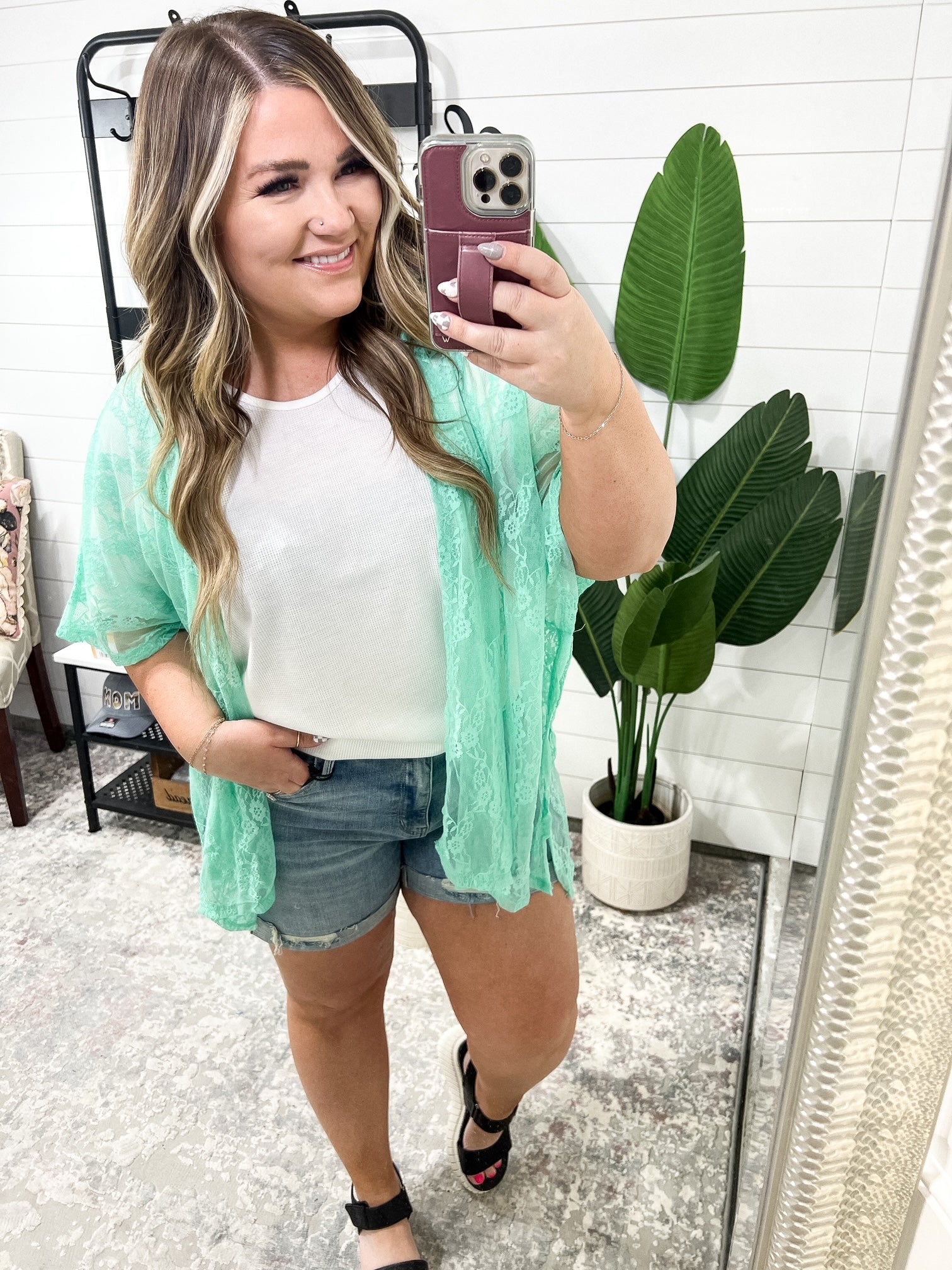 Transform your wardrobe with our Good Days Ahead Lace Kimono! Made with stretch lace, this kimono features an open front, dolman sleeves, and side slits for a trendy and comfortable look. Elevate your style and feel confident every day.