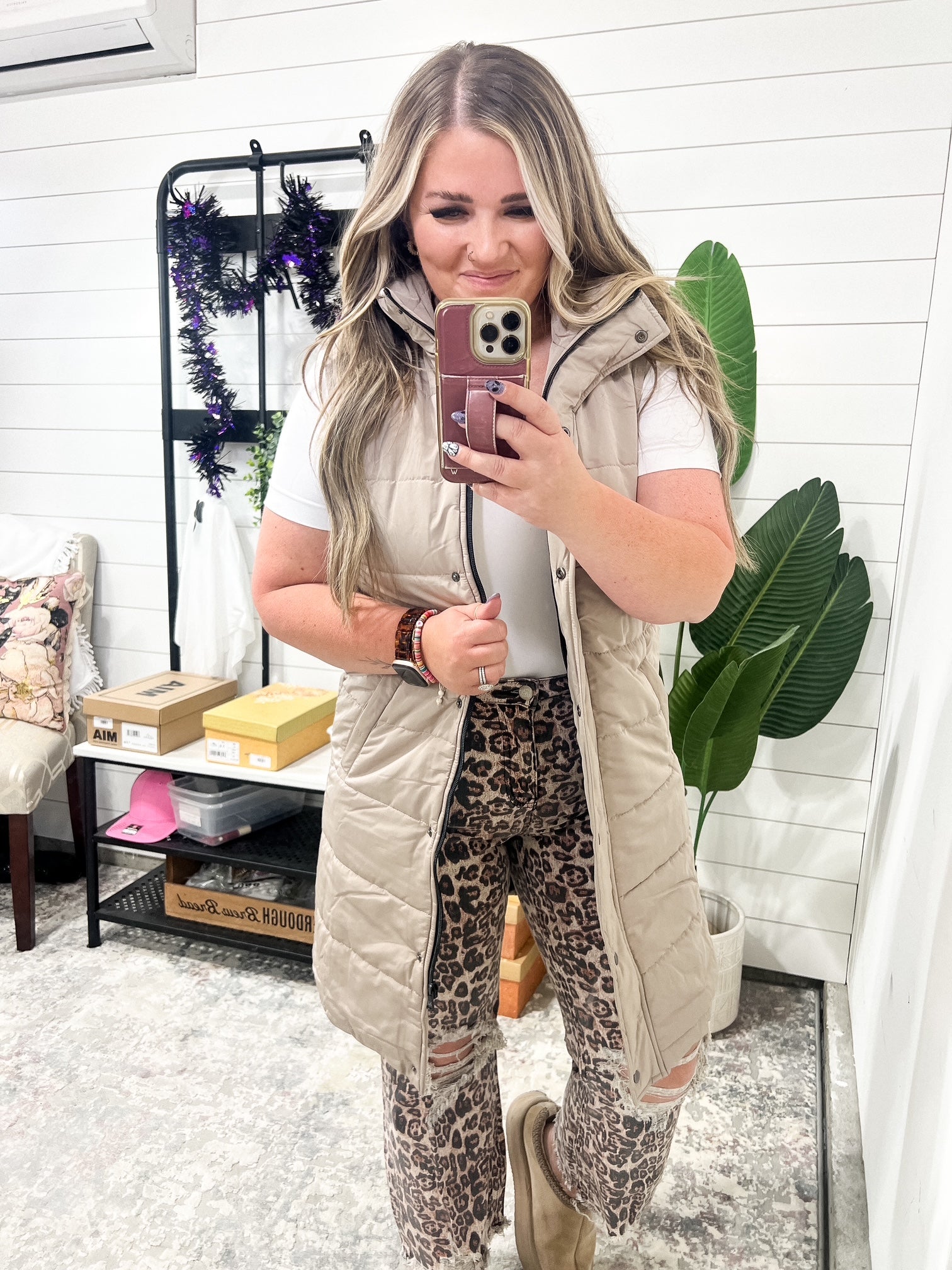 Introducing the Harlow Long Vest in Latte! With its convenient pockets, zipper and button closure and versatile pairing options with our Leah or Larissa tops, this vest is a must-have for any wardrobe. Get ready to fall in love and complete your fall and winter looks!