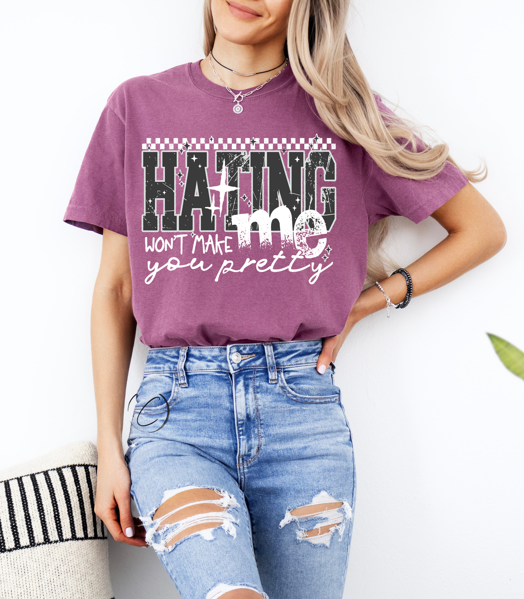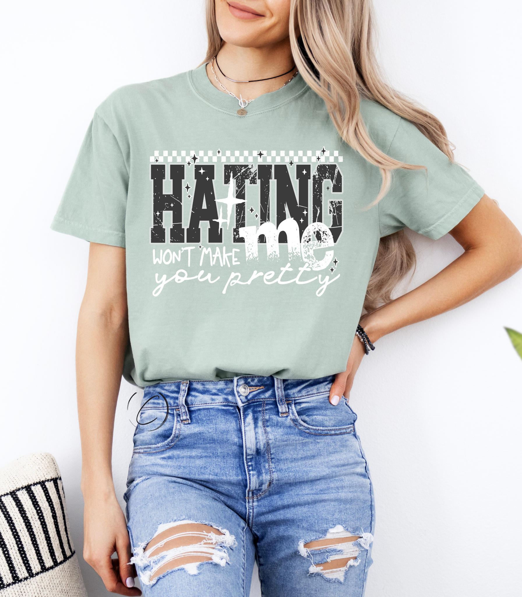 Comfort Colors is made from 100% ring-spun cotton threads and garment dyed for that lived in feel with almost no shrinkage at home.