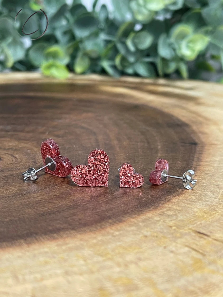 These beauties are made from acrylic and are on hypoallergenic stainless steel posts. Larger earring is ~14mm and smaller is ~9mm in size. Great for sensitive ears!