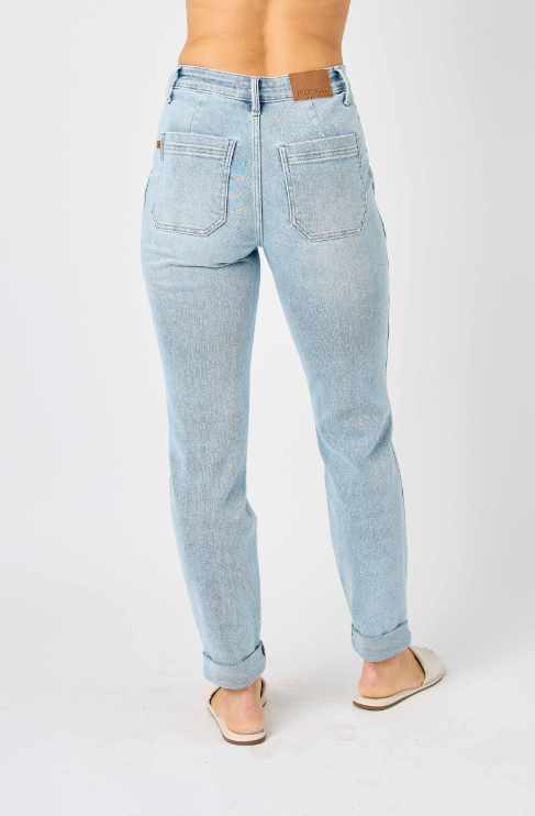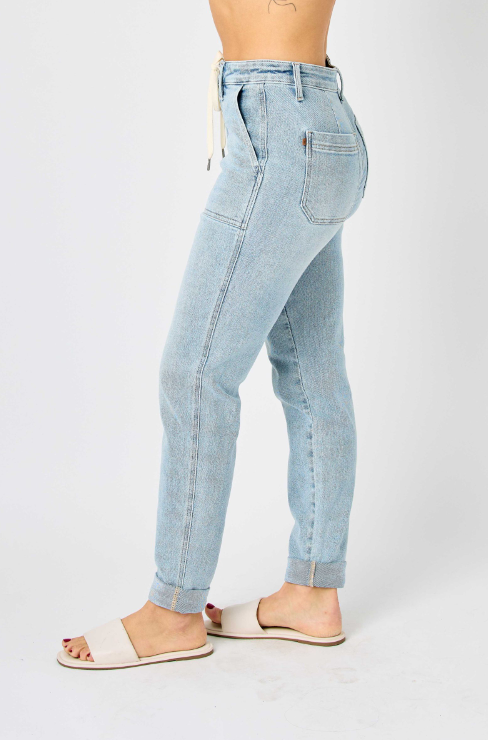 High Waist Vintage Double Cuff Light Wash Judy Blue Joggers