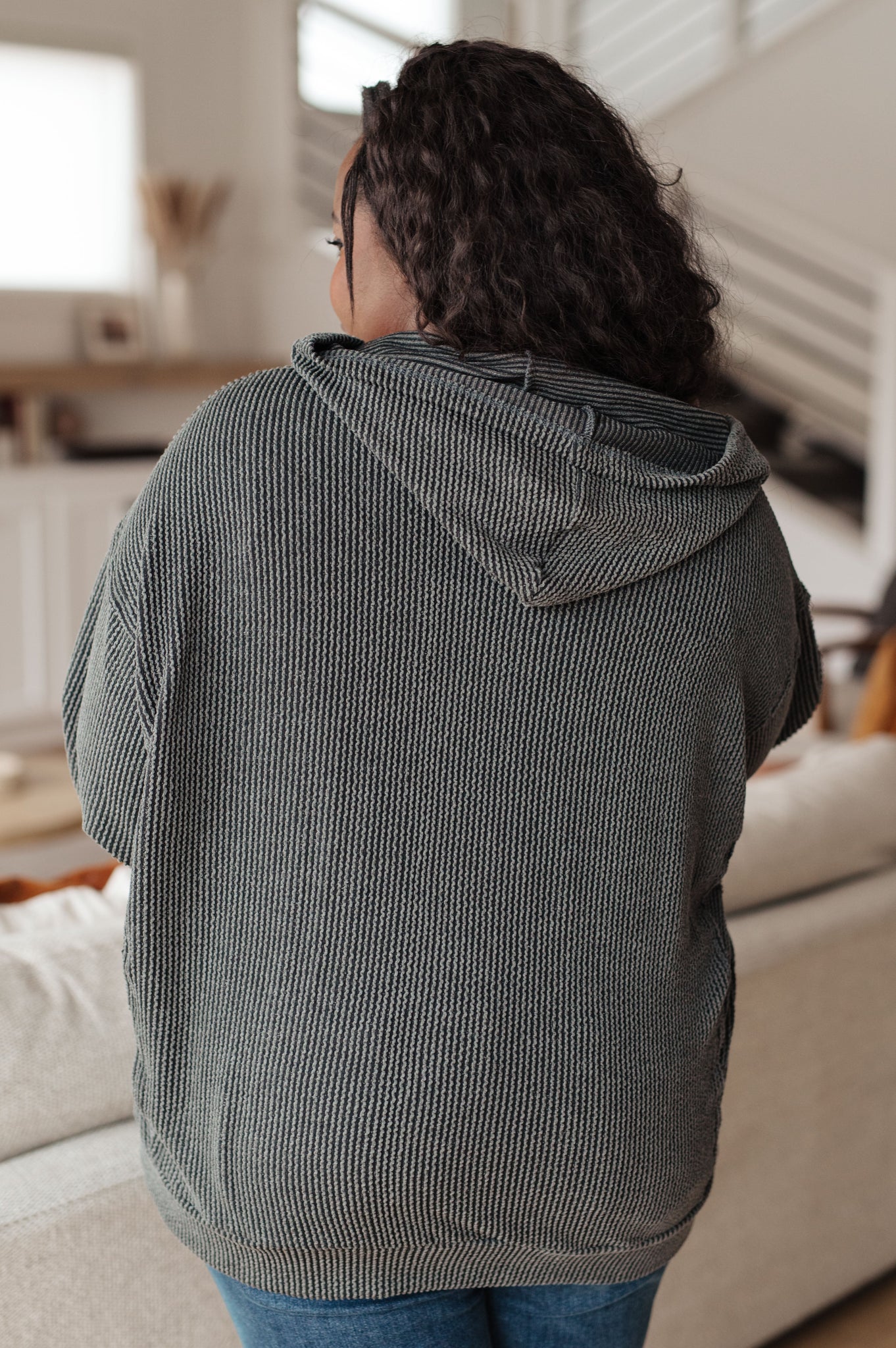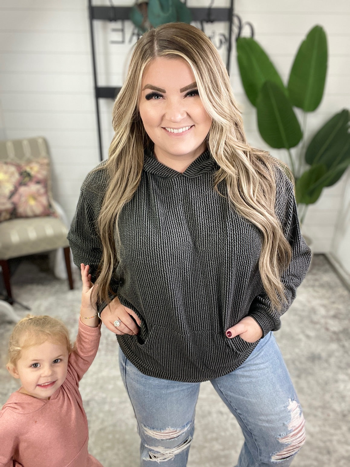 Stay comfortable and stylish with the Hold Thought Rib Knit Hoodie. Featuring a kangaroo pocket, dropped shoulders, raw edge details, and a ribbed knit, this hoodie is the perfect choice for every day wear.