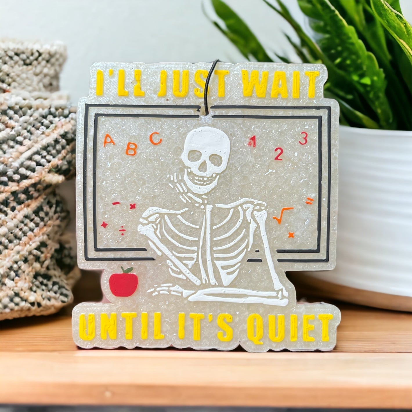 Ready to go back-to-school? Silence is golden with I'll Wait Until It's Quiet -- a fun and cute candle that features a skeleton teacher waiting patiently on quiet kids. With mouthwatering fall scents that will make you say "Ooh," you'll be ready to start the school year off on the right foot... and nose!