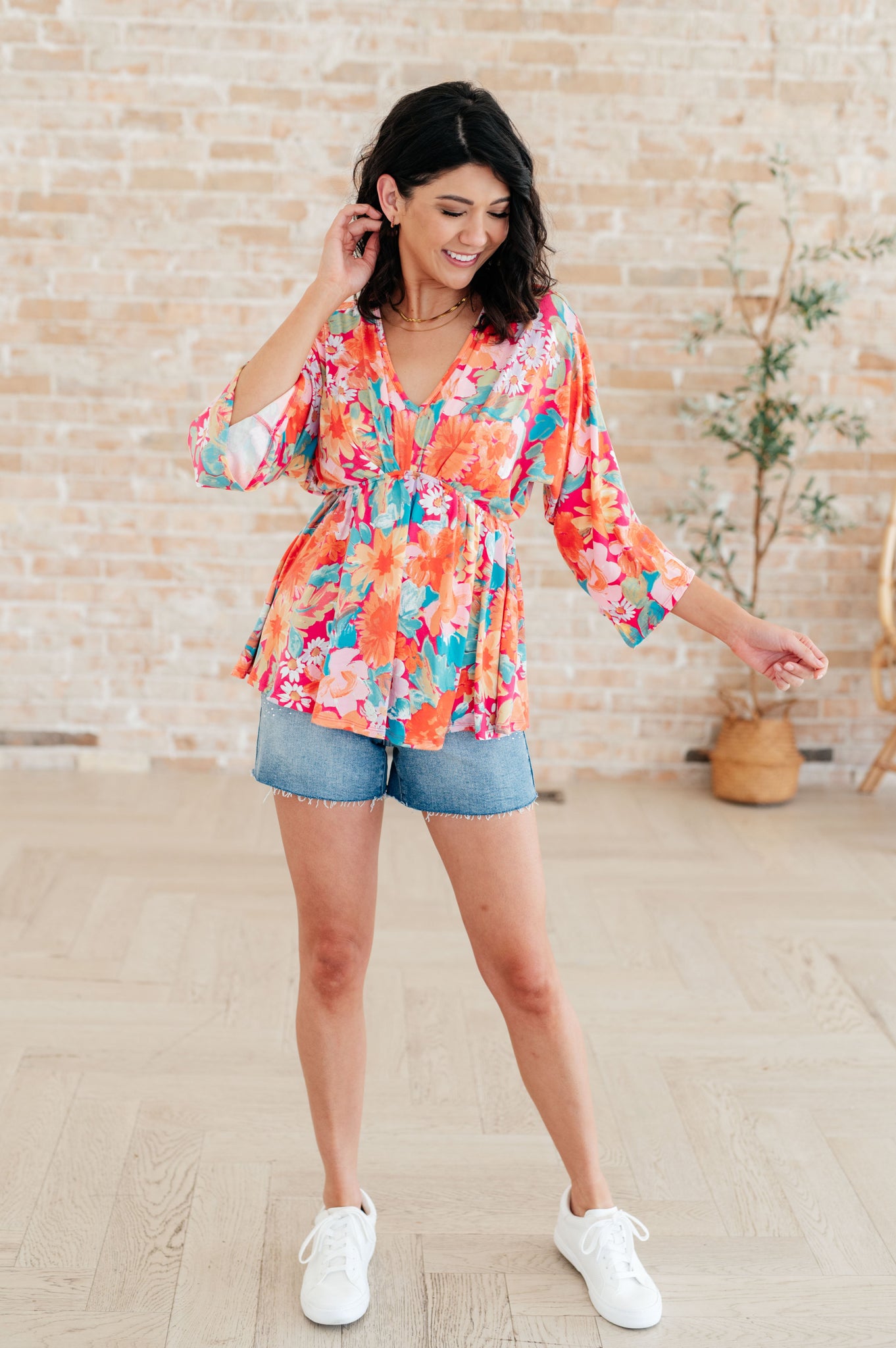This In Other Words, Hold My Hand V-Neck Blouse is made with a brushed lightweight knit for ultimate comfort. The V-neck and dolman sleeves add a touch of style while the cased elastic waistband and peplum silhouette provide a flattering fit. Perfect for any occasion, this blouse is a must-have in your wardrobe!