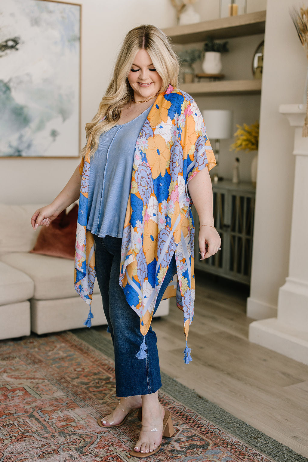 Look and feel island-ready in this beautiful Island Living Floral Kimono. Crafted from lightweight woven fabric, it features an open front with tassel details and a one size relaxed fit. You'll love the large scale floral print that brings effortless elegance to your summer look.