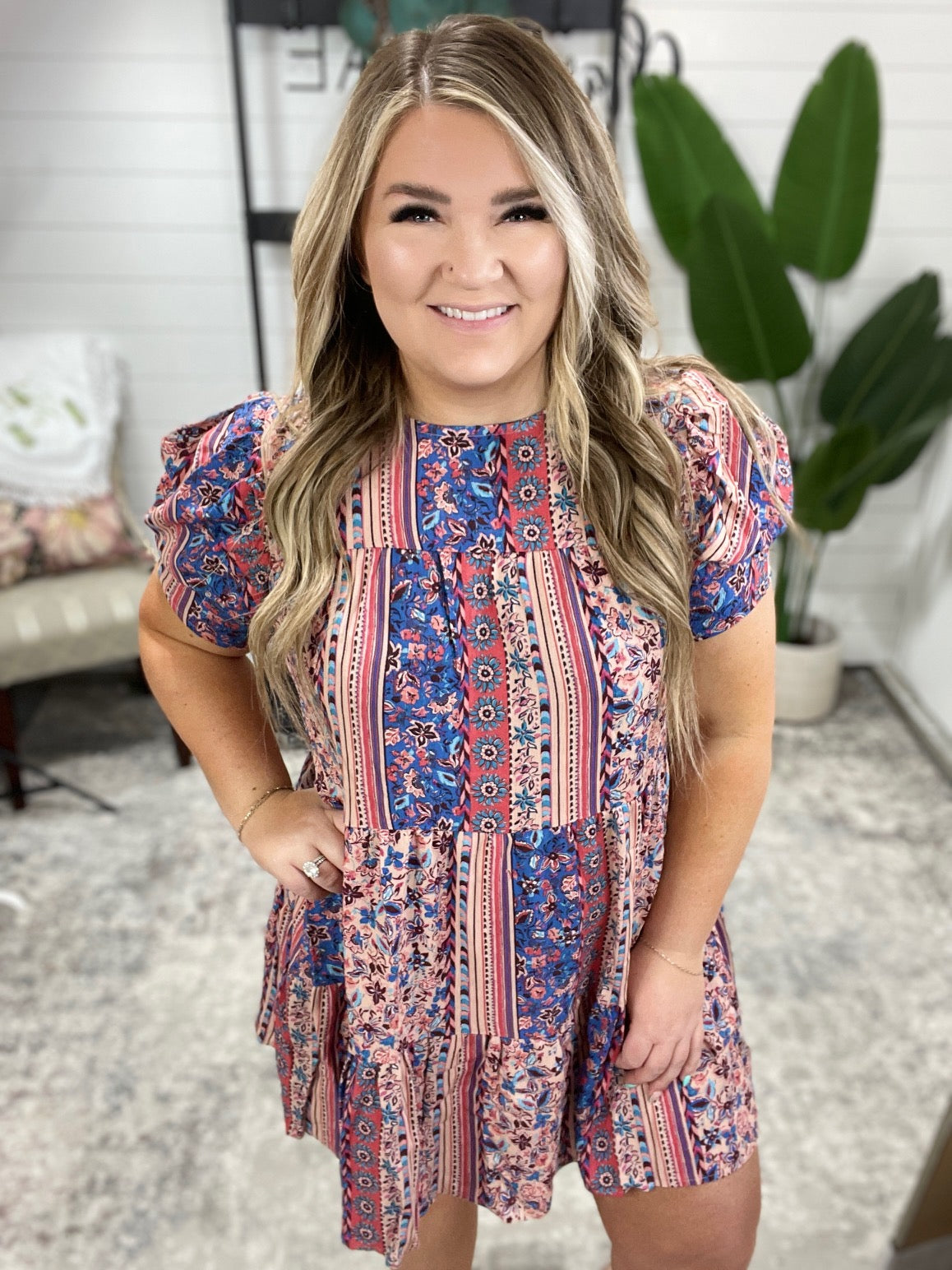 Indulge in the luxurious elegance of our It's a Delicacy Tiered Dress! This stunning piece features a boat neckline, puffed sleeves, and a unique tiered design for added flair. With a keyhole closure and crinkle woven fabric, this blouse is both stylish and comfortable. Elevate your wardrobe with this must-have addition!