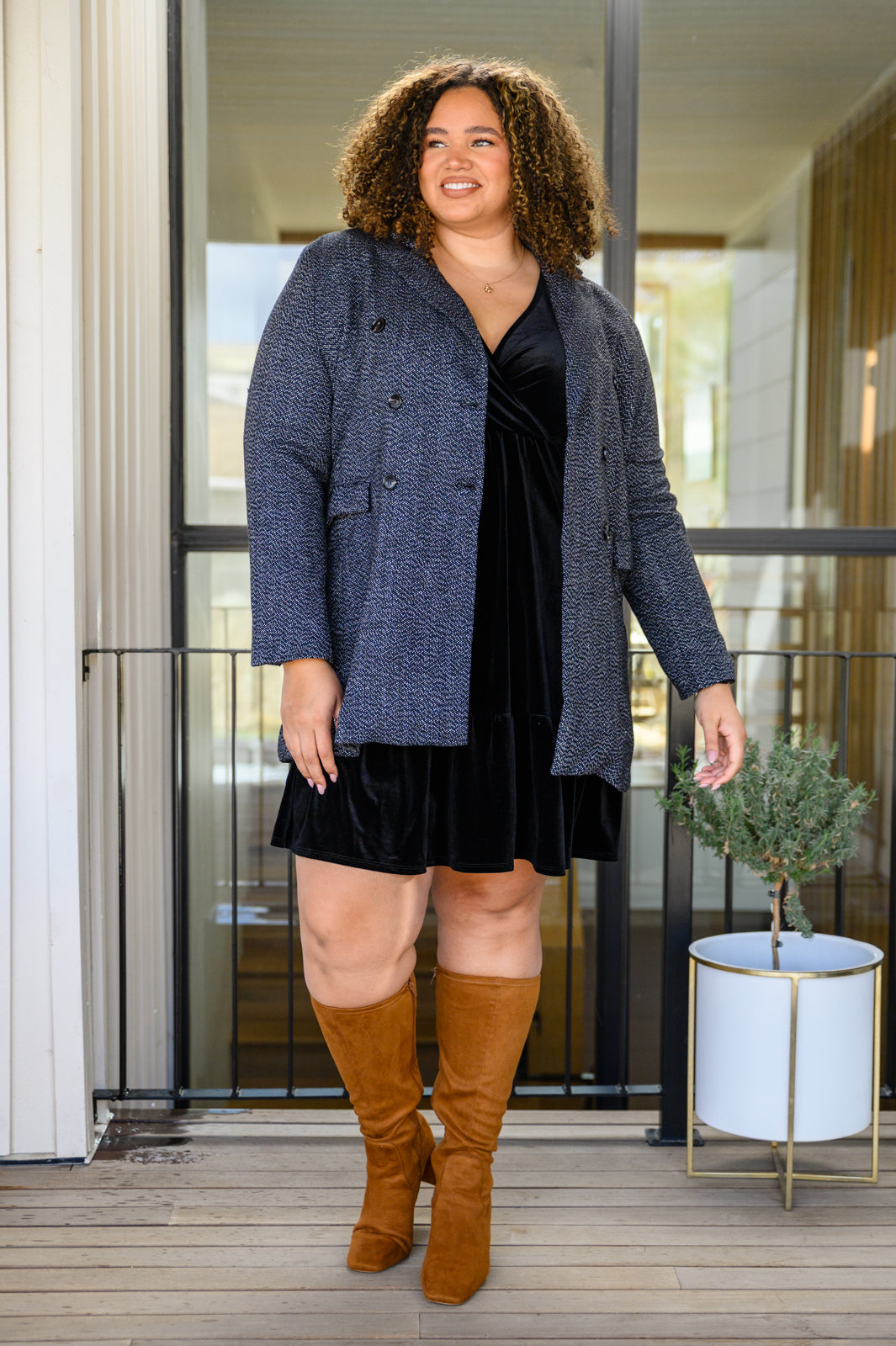 - Chic Upon Arrival Button Down Blazer Jacket In Black