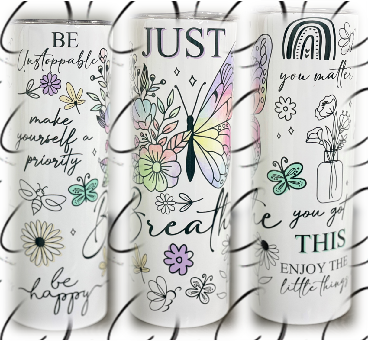 Just Breathe Butterfly 20oz Skinny Tumbler