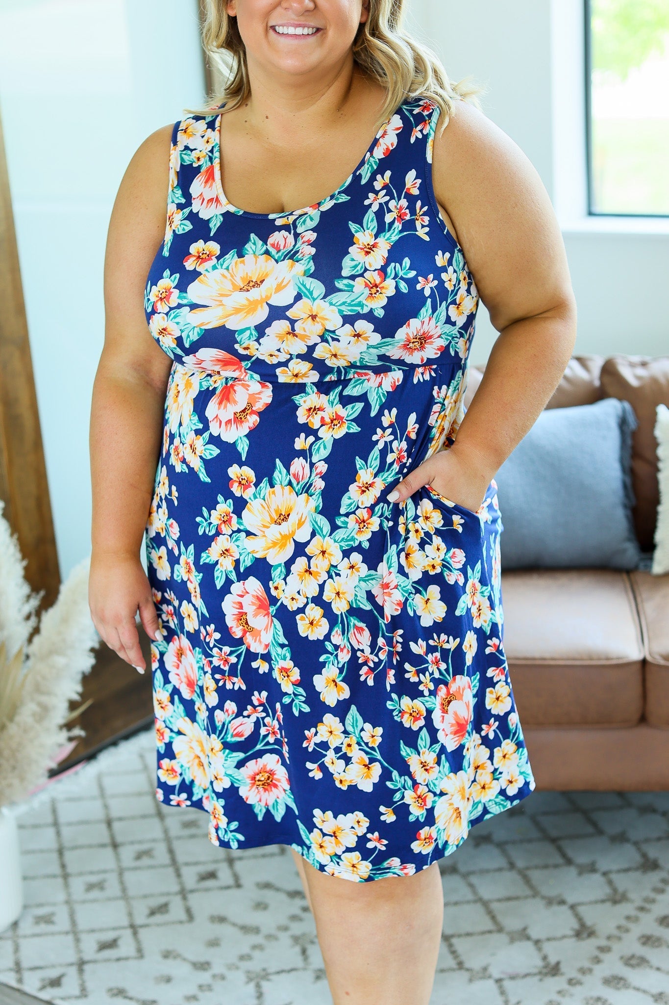 This stylish Kelsey Tank Dress features a unique floral print over a stretchy fabric for a comfortable and flattering fit. Designed with a pocket and perfect for the summer season, it's a great way to enjoy the sun in style!