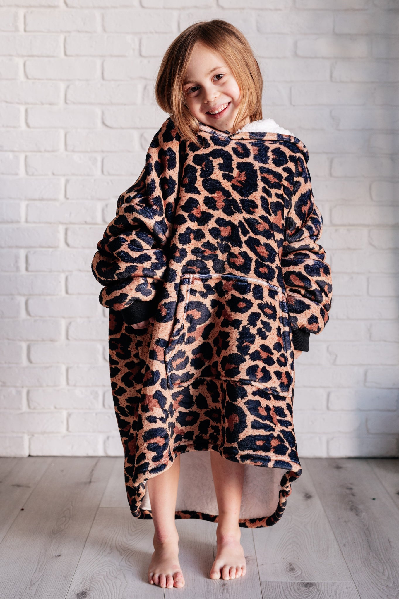 Introduce the little ones to the finer things in life with our Kids Oversized Hoodie Blanket! It's made from super soft poly velour with the coziest sherpa lining and has deep kangaroo pocket. Featuring a hooded neckline and balloon sleeves with banded, ribbed cuffs. Perfect for movie nights, errand runs, or just chilling around the house!
