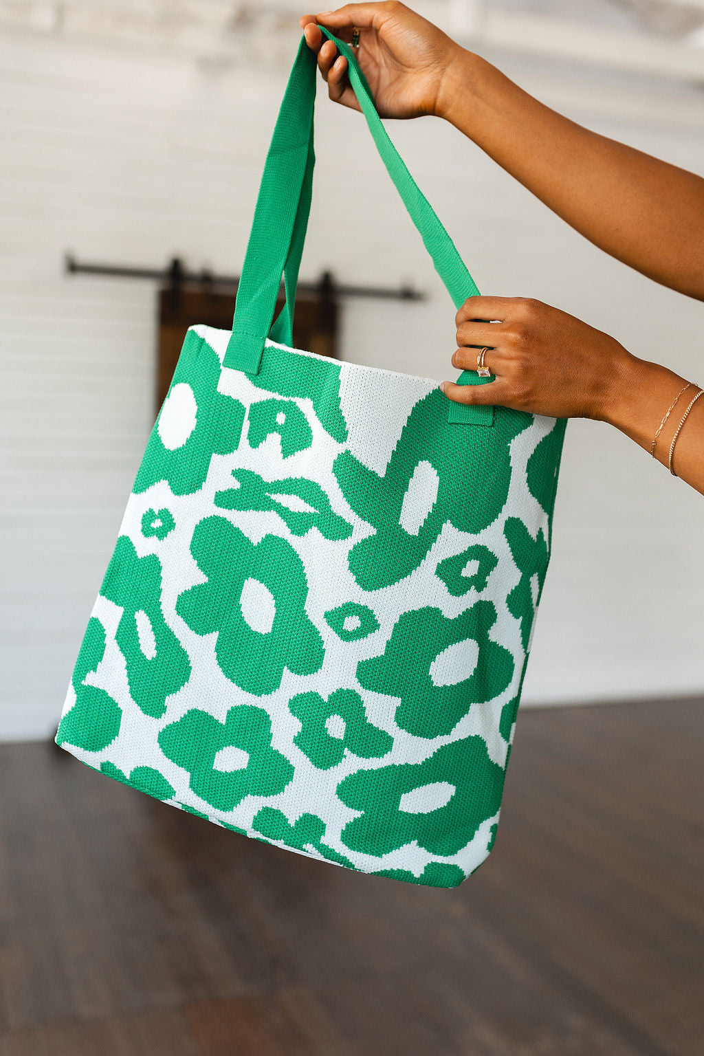 Say goodbye to boring bags with the Lazy Daisy Knit Bag! With a fun, knit design featuring a contrast handle and a large-scale daisy pattern, this unique tote bag is not only stylish but easy to wear, too. Make it your perfect grab-and-go tote and let your style bloom!