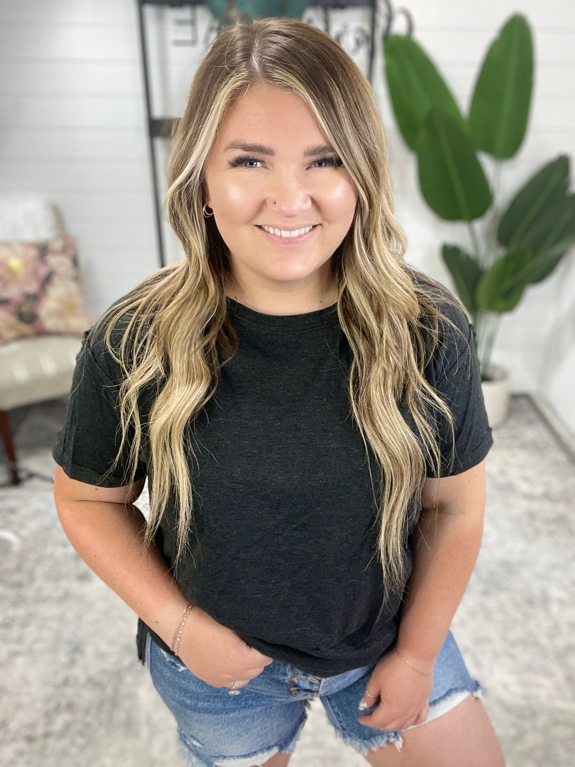 Try the Let Me Live Relaxed Tee in Black for a lightweight and relaxed fit. Featuring a boat neckline, drop shoulder, and stepped hem with side slit, this tee is perfect for lounging or casual outings. The exposed seams and faux back tag add a unique touch.