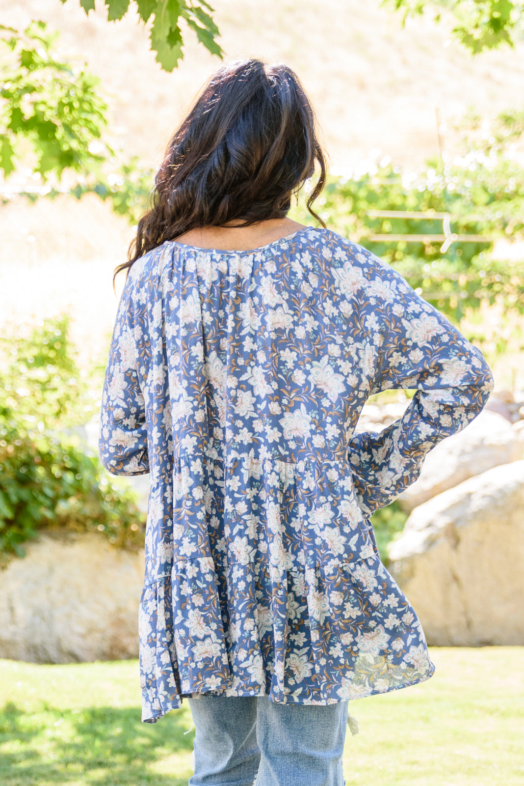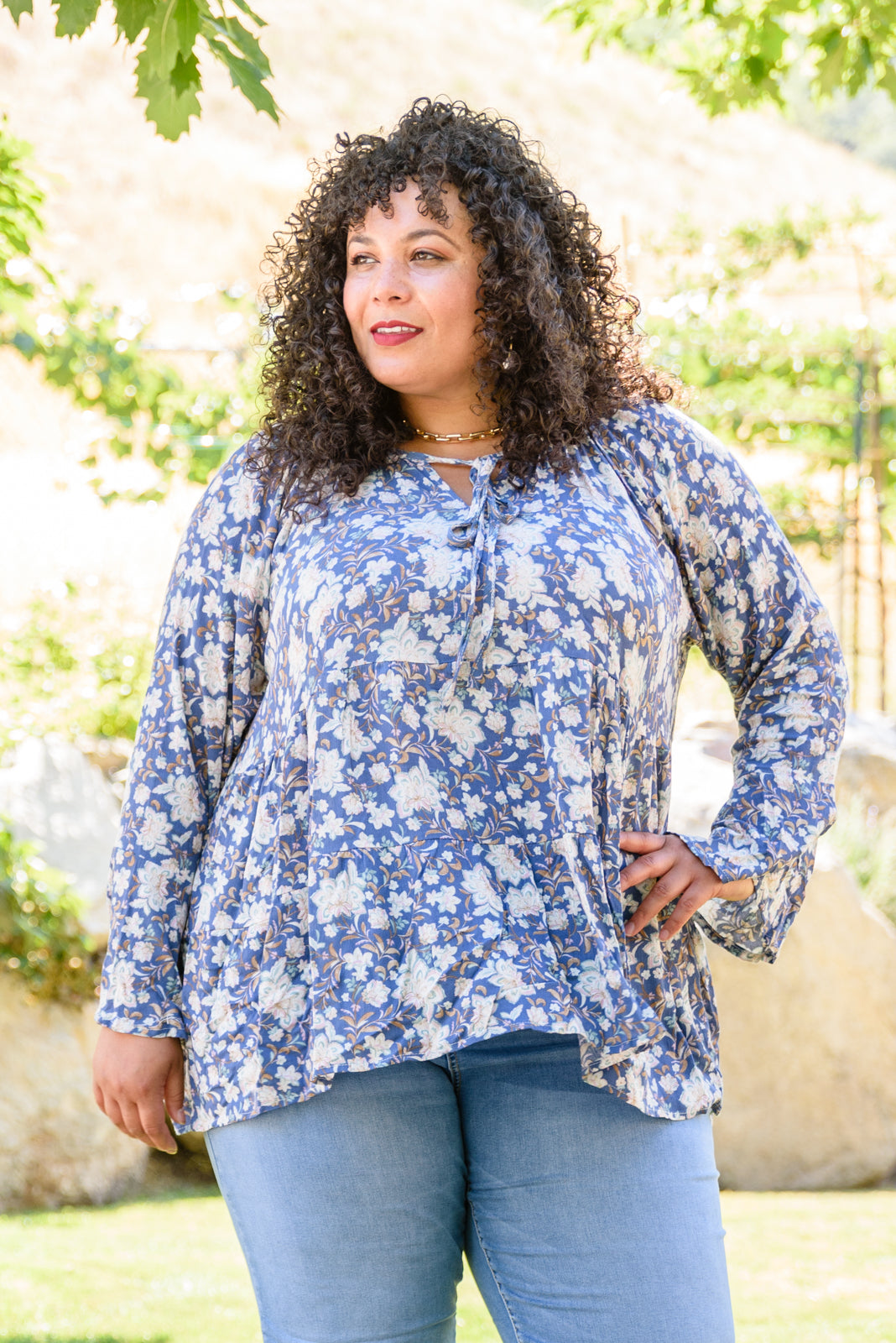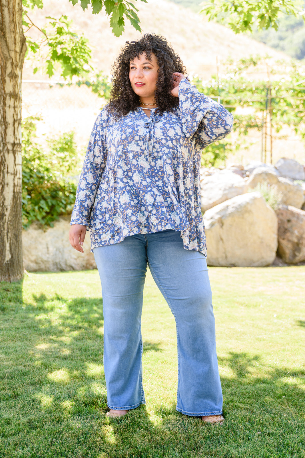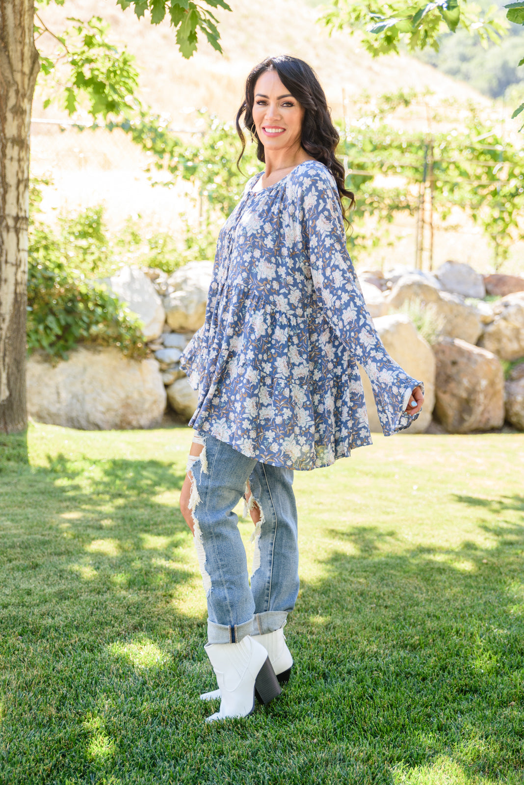 The Like You Did Before Blouse has a look that can't be beat! The cutest boho floral print is perfection and the babydoll silhouette with a two-tiered bodice, keyhole neckline, bell flared sleeves and tie detail is iconic and so fun to wear. we love this style paired with shorts, jeans, boots, heels and all the accessories...the options are really endless!