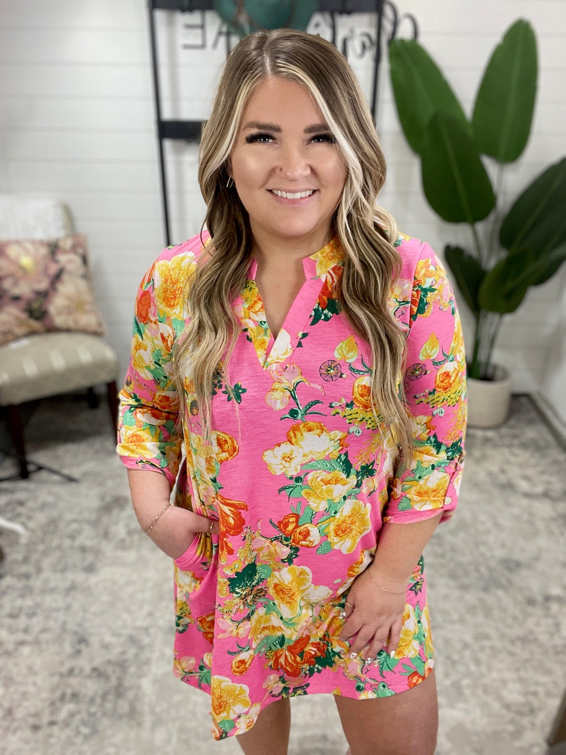 The Lizzy Dress is a must-have addition to your wardrobe. Featuring soft and cooling Bulgari fabric, a flattering V-neckline, and versatile 3/4 rolled sleeves with a button tab. Dress it up or down, this dress is sure to make a statement wherever you go.
