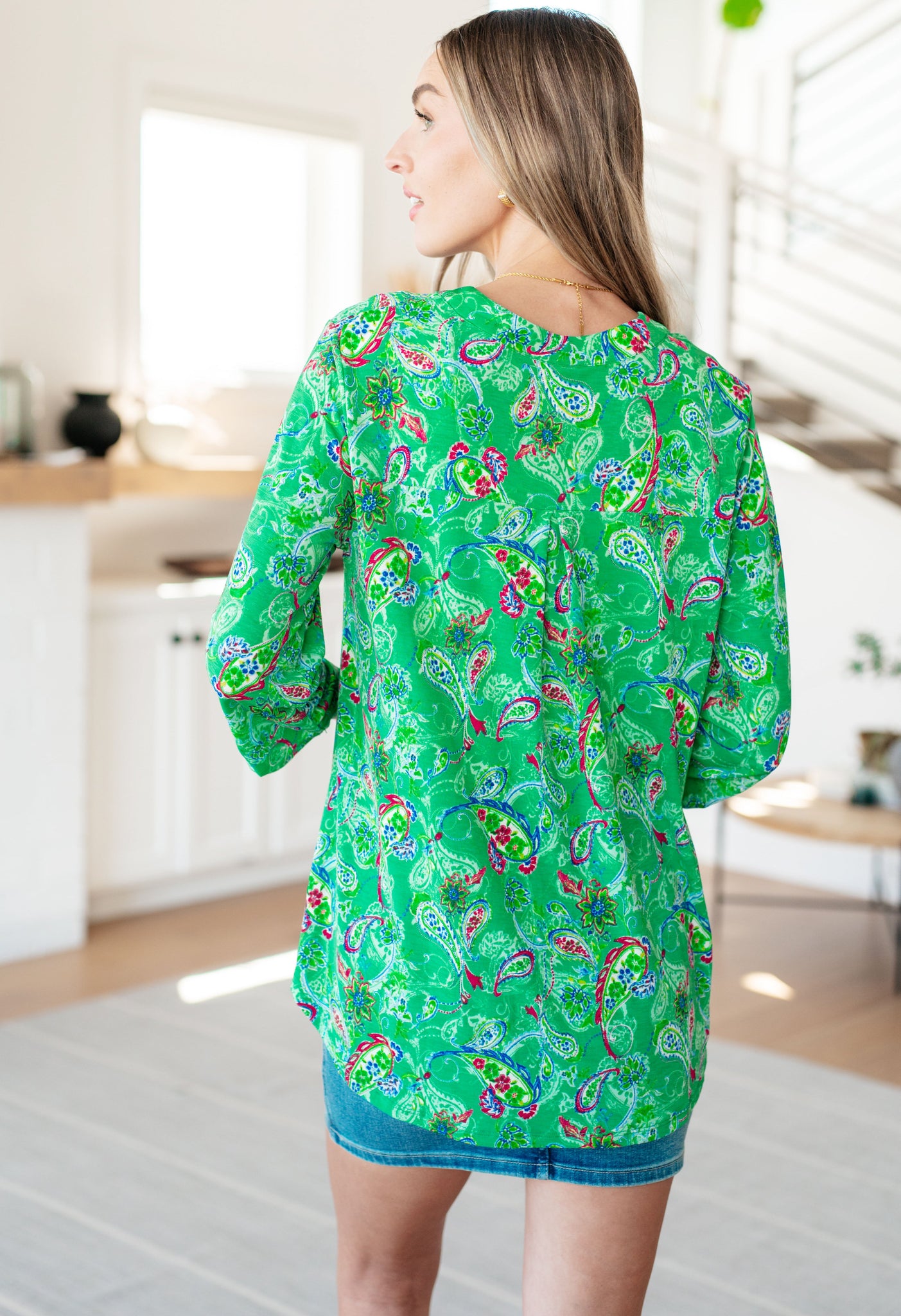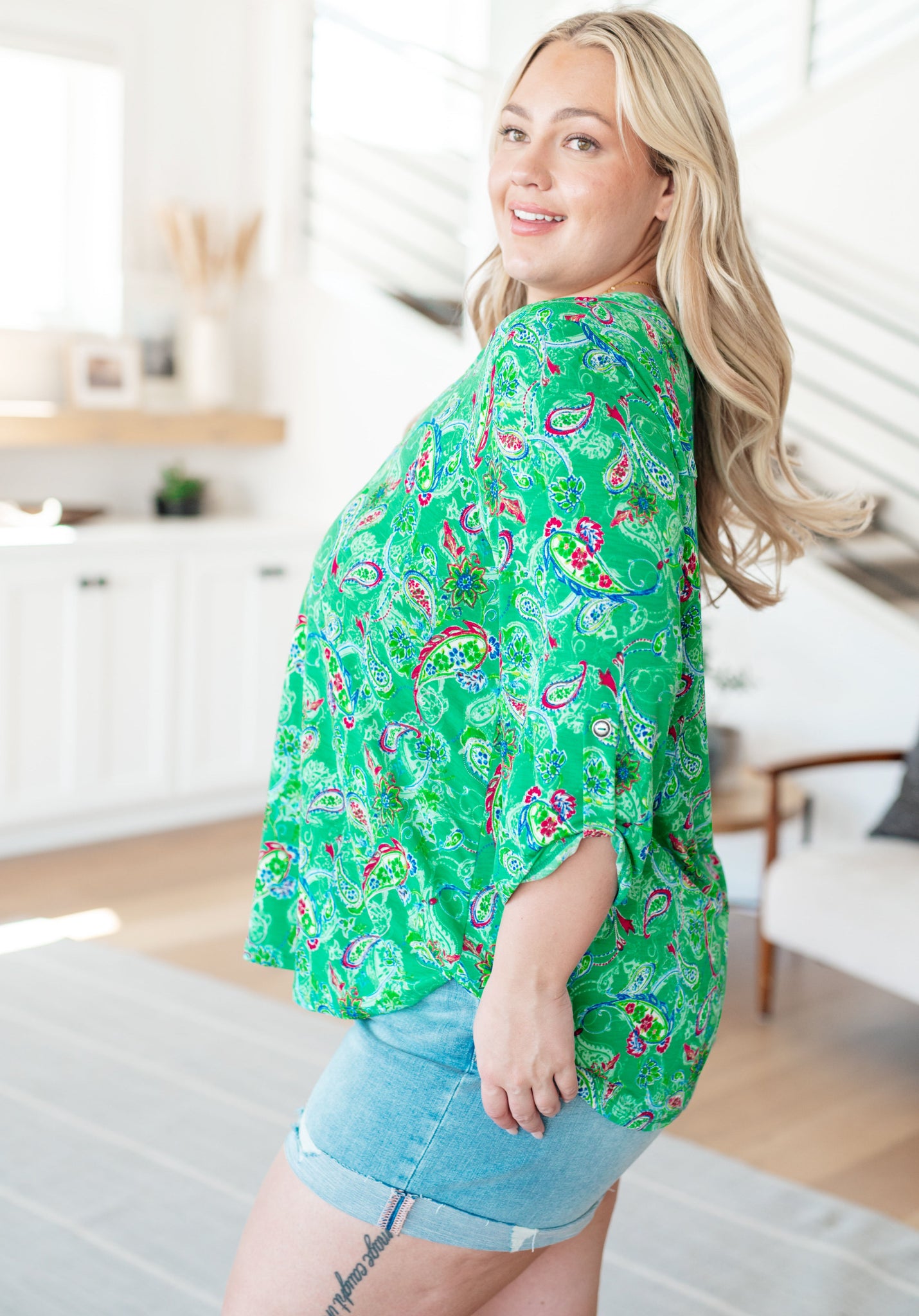 Transform your closet with the Lizzy Top. Made from Bulgari fabric, this top features a gabby neckline and rolled sleeves with button tabs for a comfortable, yet eye catching piece. The 3/4 sleeve and scoop hem add flow to the already stylish piece. Experience comfort and style in one with the Lizzy Top.