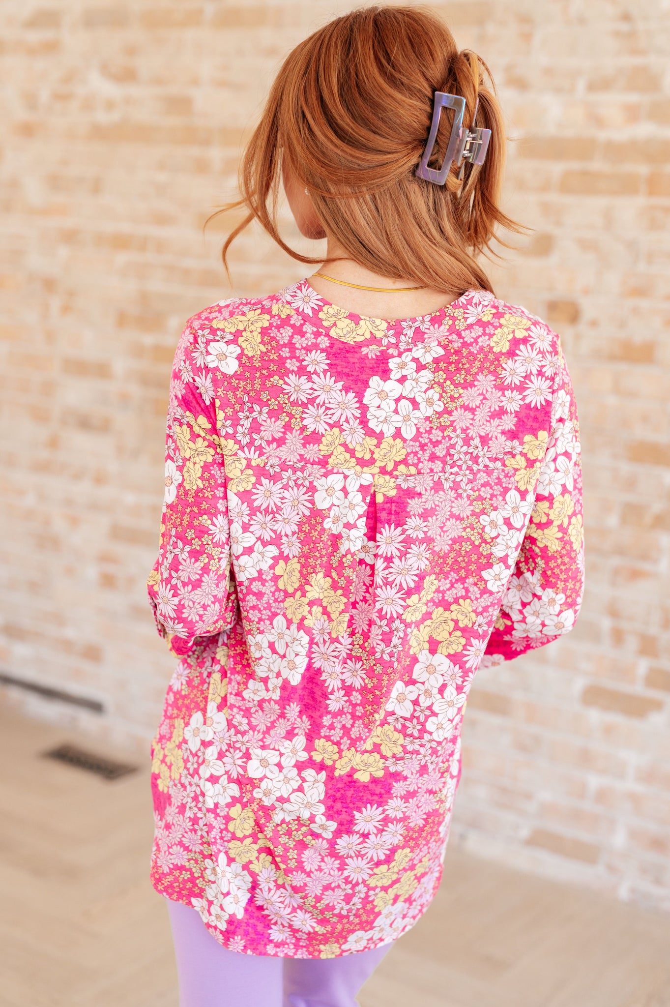Transform your closet with the Lizzy Top. Made from Bulgari, this top features a v-neckline and rolled sleeves with button tabs for a comfortable, yet eye-catching piece. The 3/4 length sleeves and scoop hem add flow to the already stylish piece. Experience comfort and style in one with the Lizzy Top.