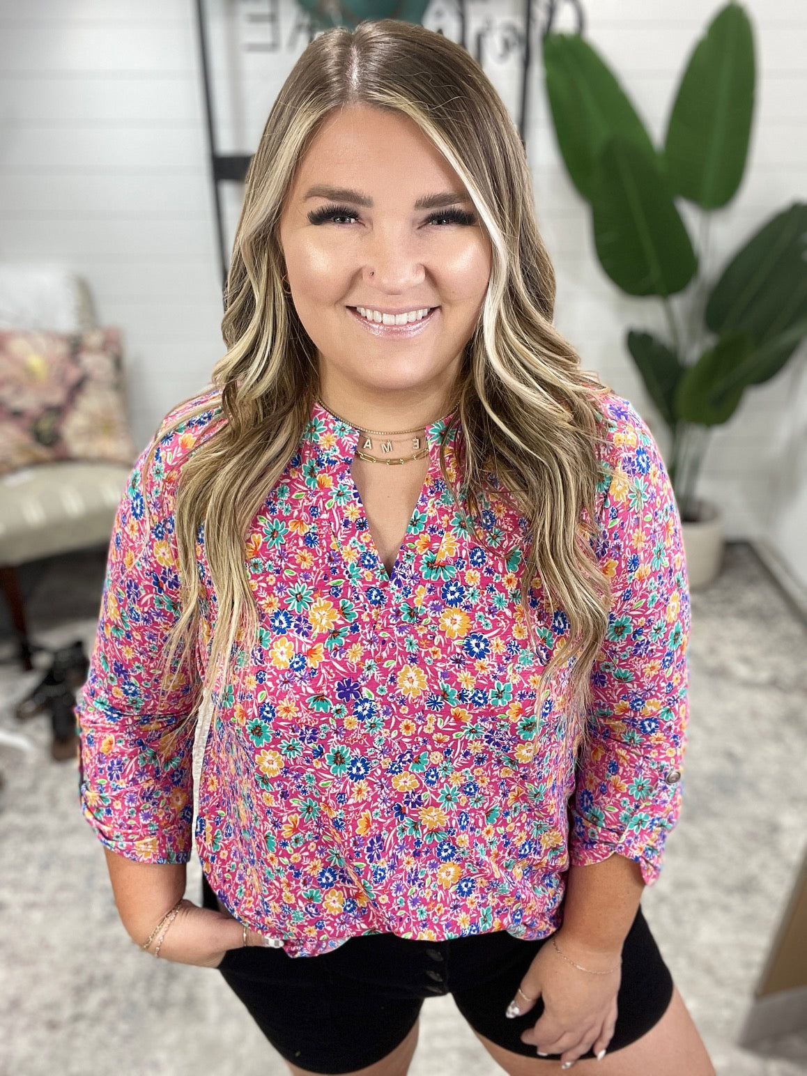 Transform your closet with the Lizzy Top. Made from Bulgari, this top features a v-neckline and rolled sleeves with button tabs for a comfortable, yet eye-catching piece. The 3/4 length sleeves and scoop hem add flow to the already stylish piece. Experience comfort and style in one with the Lizzy Top.