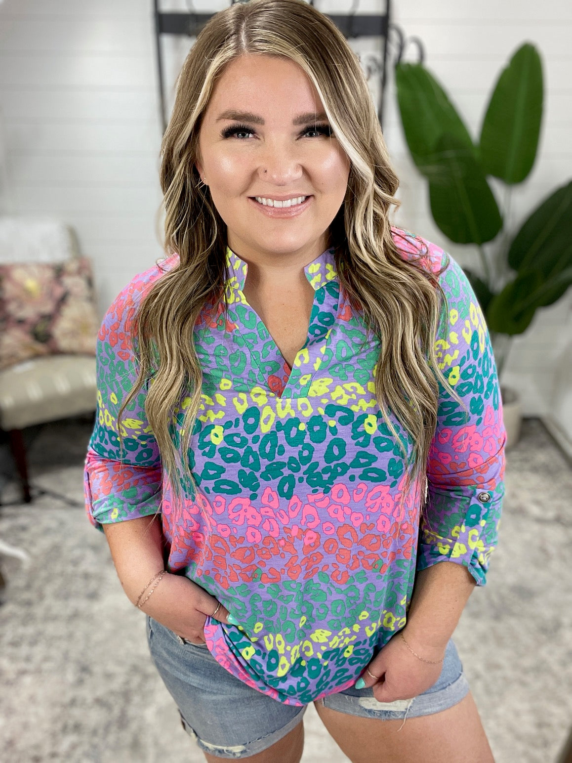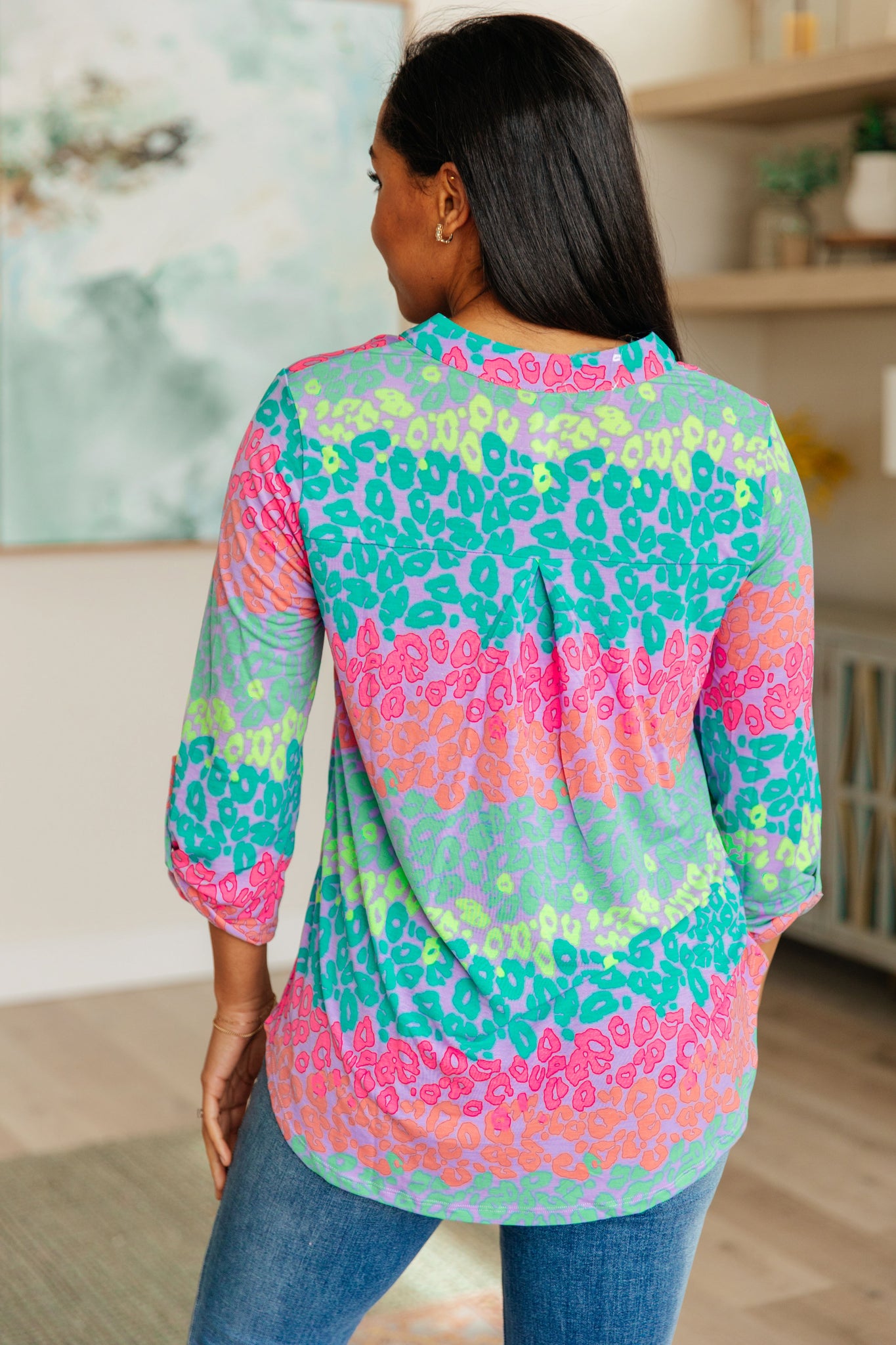 Transform your closet with the Lizzy Top. Made from Bulgari, this top features a gabby neckline and rolled sleeves with button tabs for a comfortable, yet eye-catching piece. The 3/4 sleeve and scoop hem add flow to the already stylish piece. Experience comfort and style in one with the Lizzy Top.